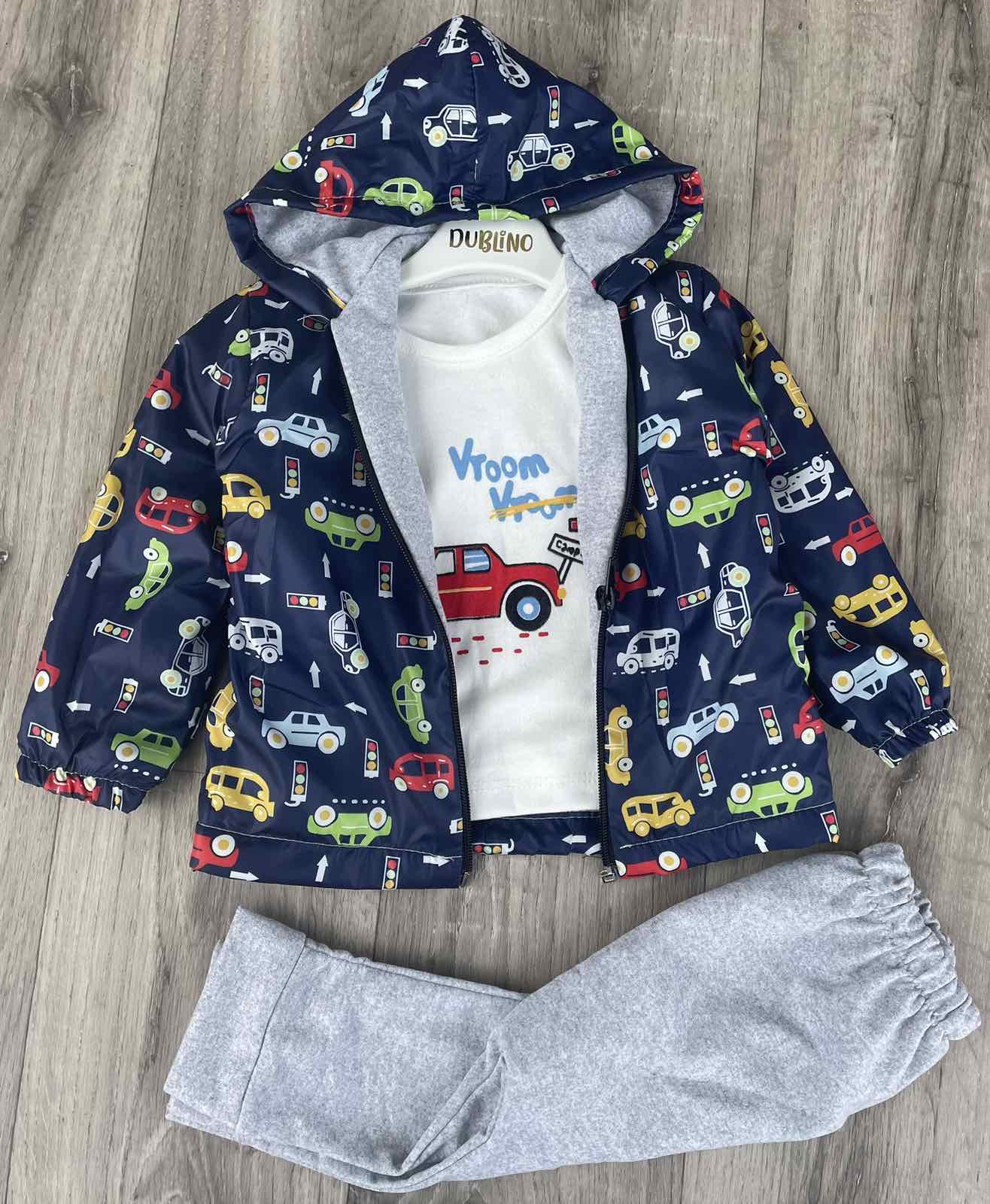 Костюм Dublino «Машинки» темно-синій, хлопчик 6-9-12-18 місяців оптом уп. - 4 шт.