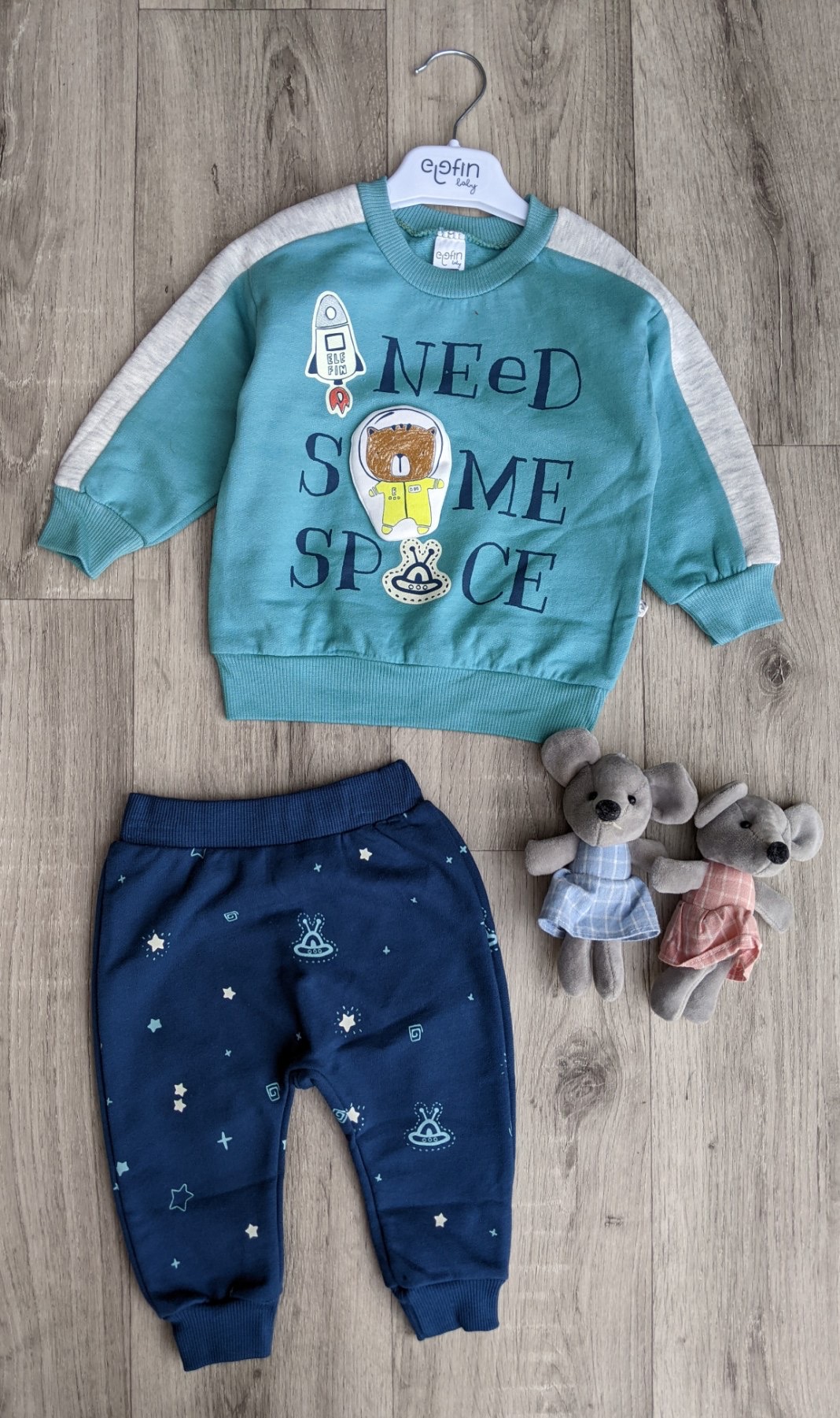 Костюм Elefin "Need some space" бірюзовий, хлопчик 3-6-9-12 місяців оптом уп. - 4 шт.