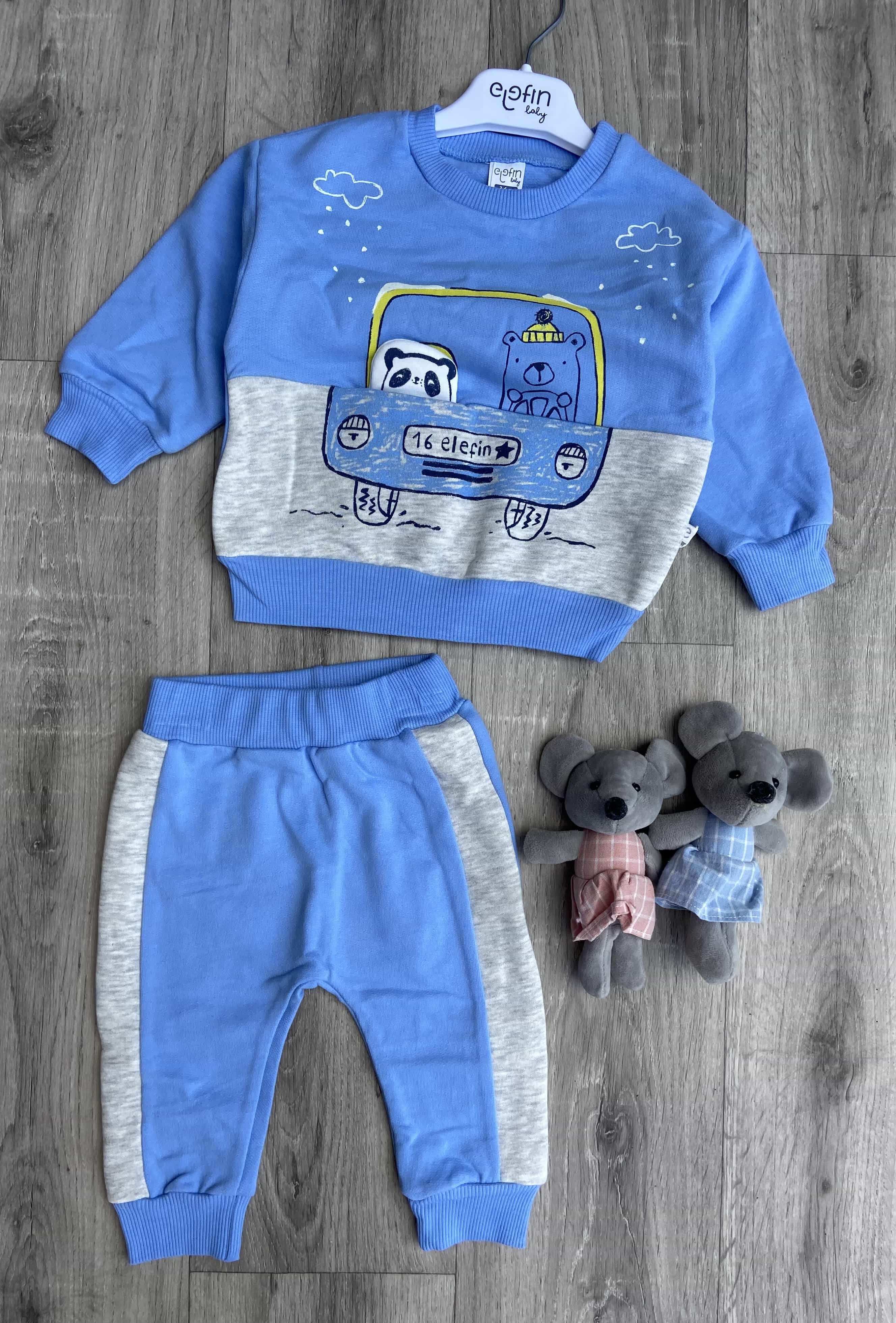 Костюм Elefin "Панда", блакитний, хлопчик 3-6-9-12 місяців оптом уп. - 4 шт.