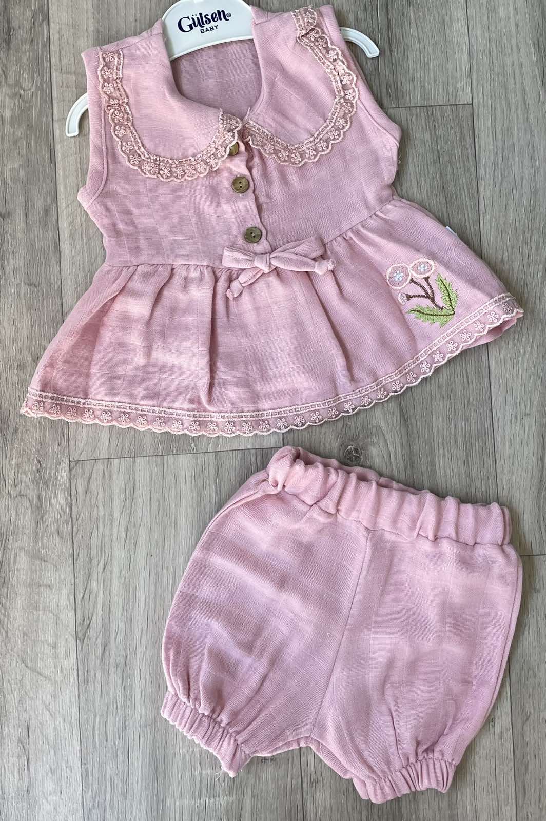 Костюм Gulsen «Квіточка» пудра, дівчинка 6-9-12-18 місяців оптом уп. - 4 шт.