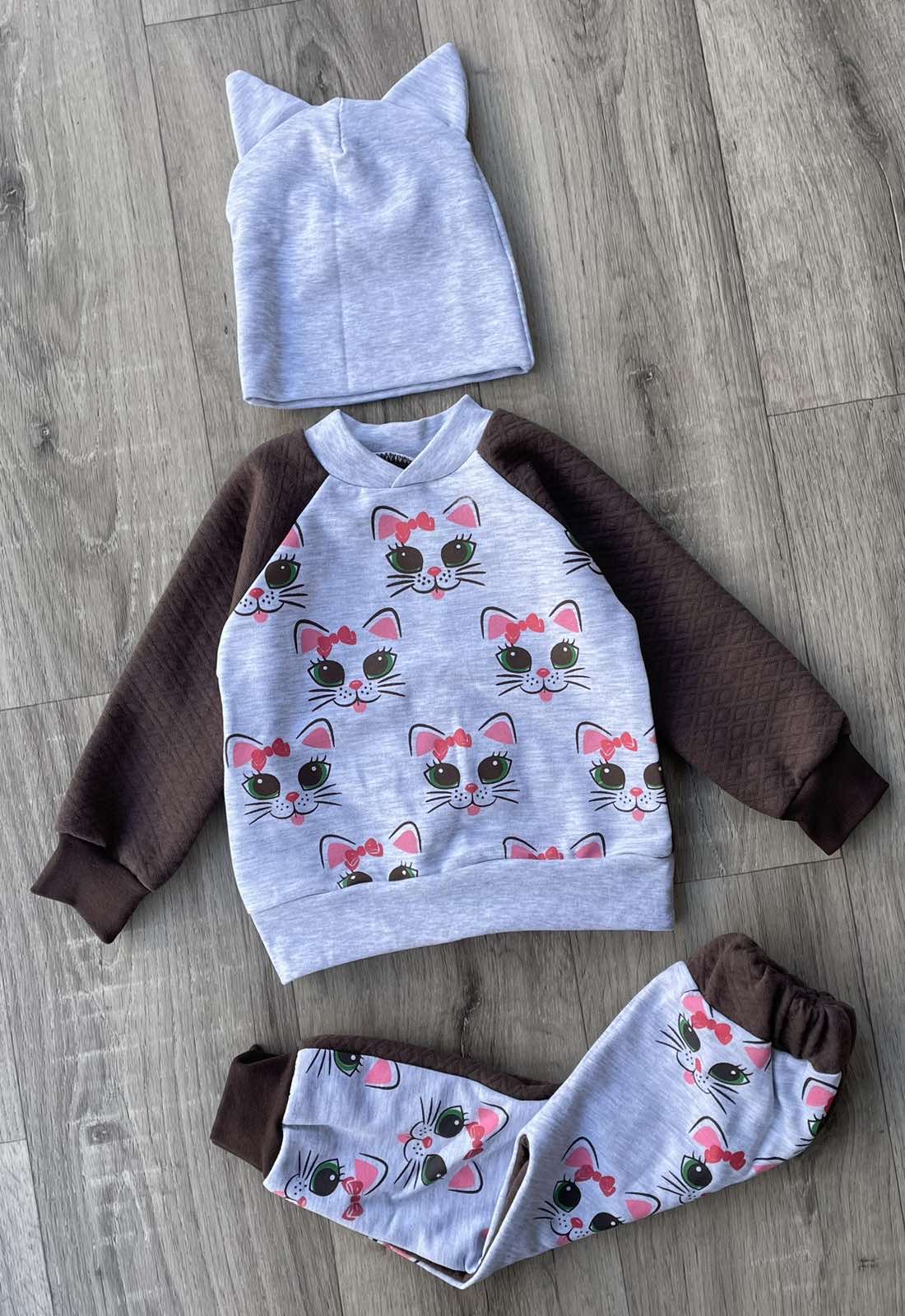 Костюм «Котик» сірий, дівчинка 6-9-12 місяців оптом уп. - 3 шт.