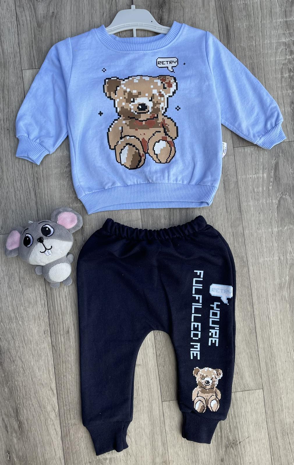 Костюм Mimiico Kids "Піксель" блакитний, хлопчик 9-12-18-24 місяців оптом уп. - 4 шт.