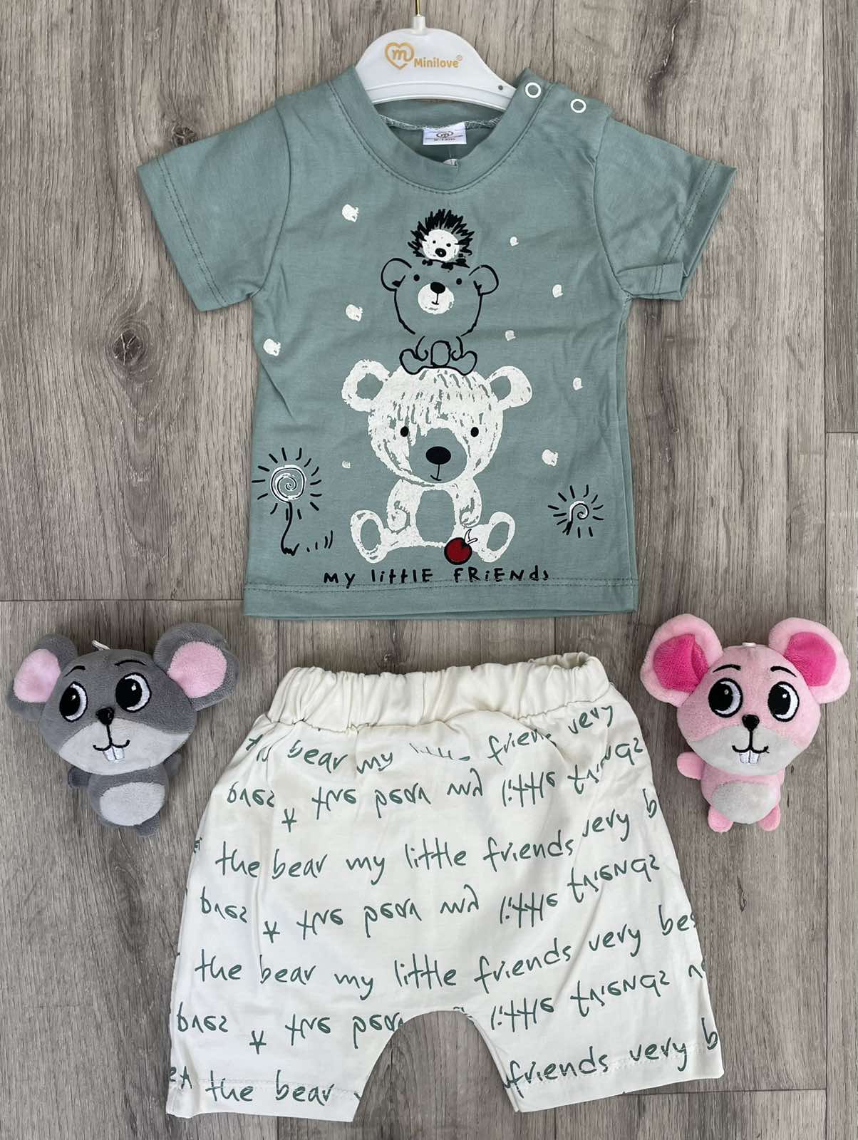 Костюм Mini Love "Animals" хакі, хлопчик 9-12-18 місяців оптом уп. - 3 шт.
