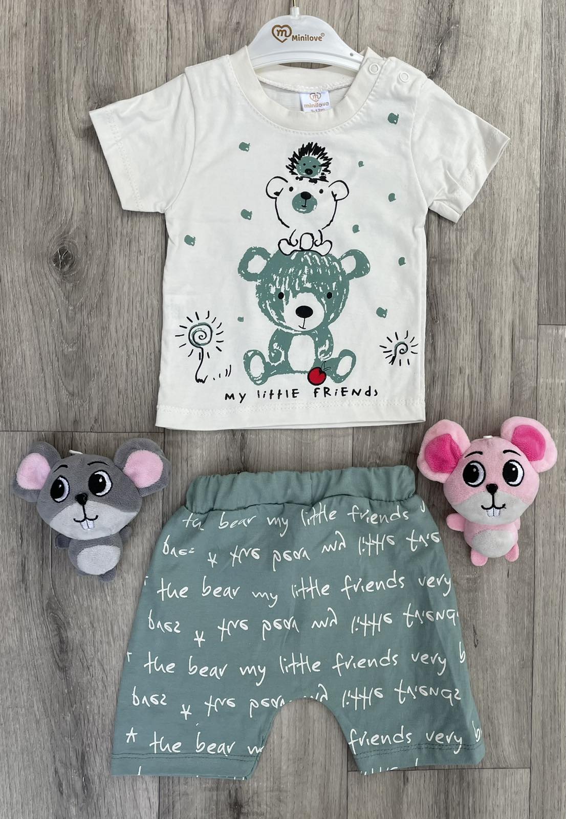 Костюм Mini Love "Animals" молочний з хакі, хлопчик 9-12-18 місяців оптом уп. - 3 шт.