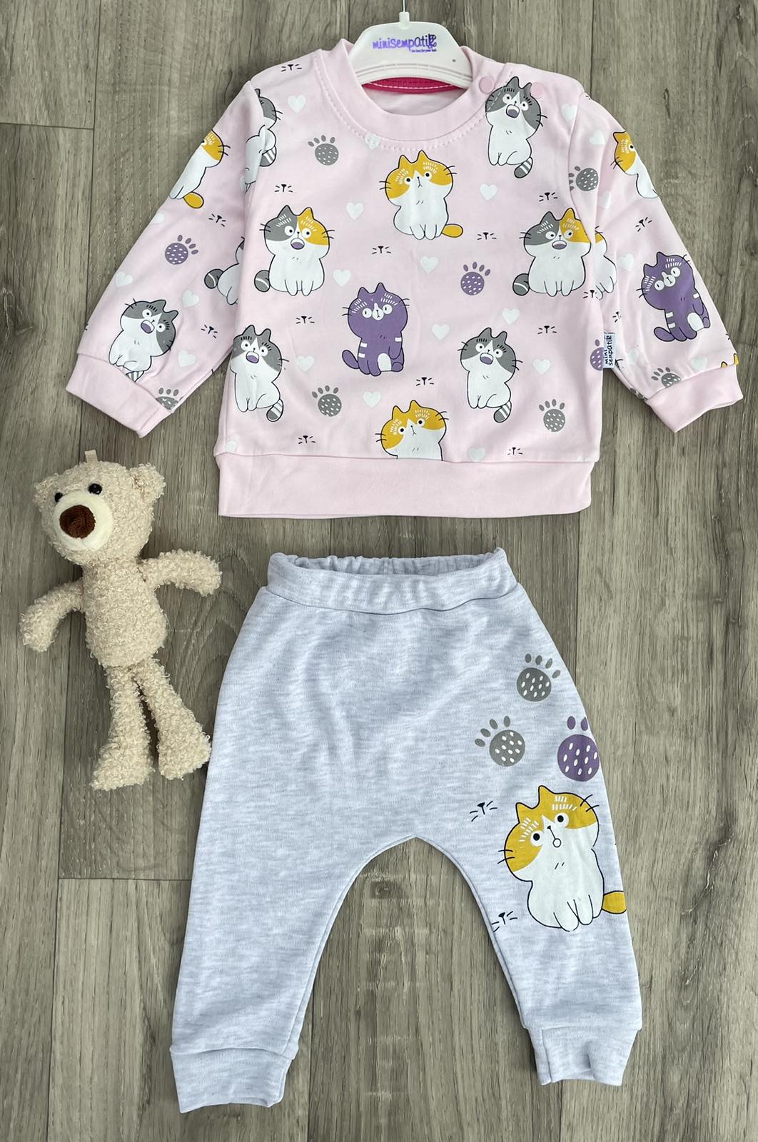 Костюм Minisempatir "Cats" рожевий , дівчинка 3-6-9 місяців оптом уп. - 3 шт.