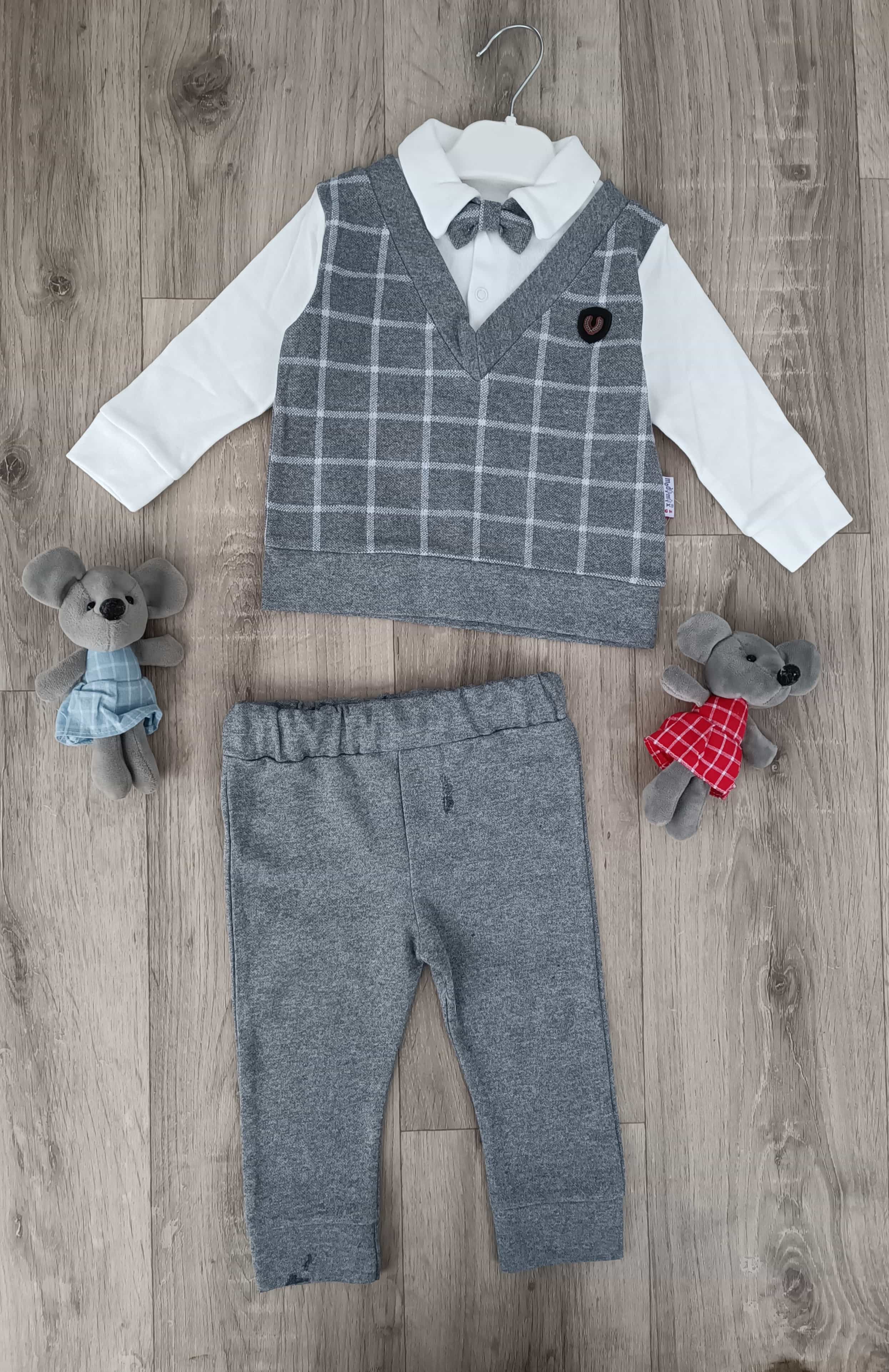 Костюм Modimix " У клітинку" світло-сірий, хлопчик 6-12-18 місяців оптом уп. - 3 шт.