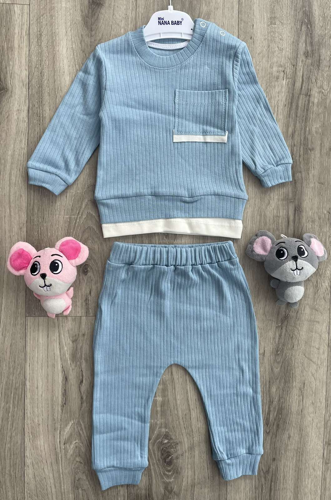 Костюм Nana Baby "Рубчик" блакитний, хлопчик 3-6-9-12 місяців оптом уп. - 4 шт.