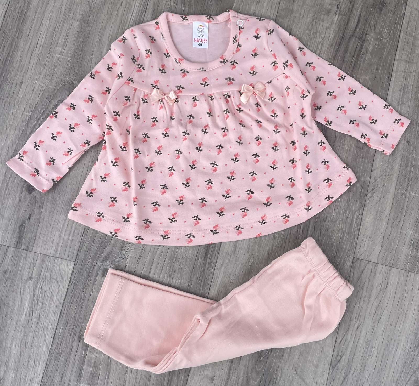 Костюм Nikuby «Цветочки» персиковый, девочка 6-9-12 месяцев оптом уп. - 3 шт.