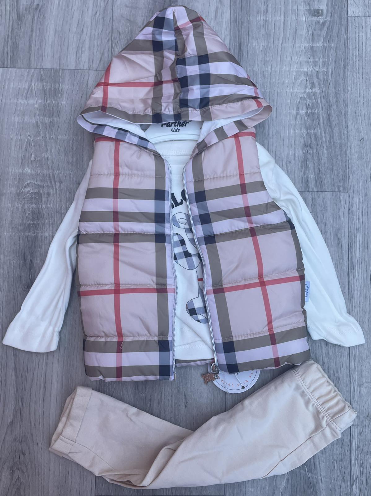 Костюм Partner "Клітинка" бежевий, унісекс 9-12-18-24 місяців оптом уп. - 4 шт.