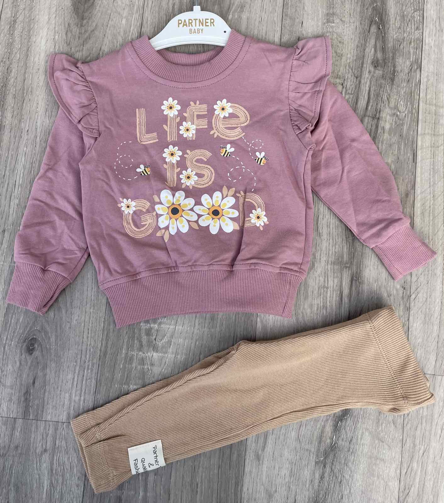 Костюм Partner "Life is good" пудра, дівчинка 9-12-18-24 місяців оптом уп. - 4 шт.