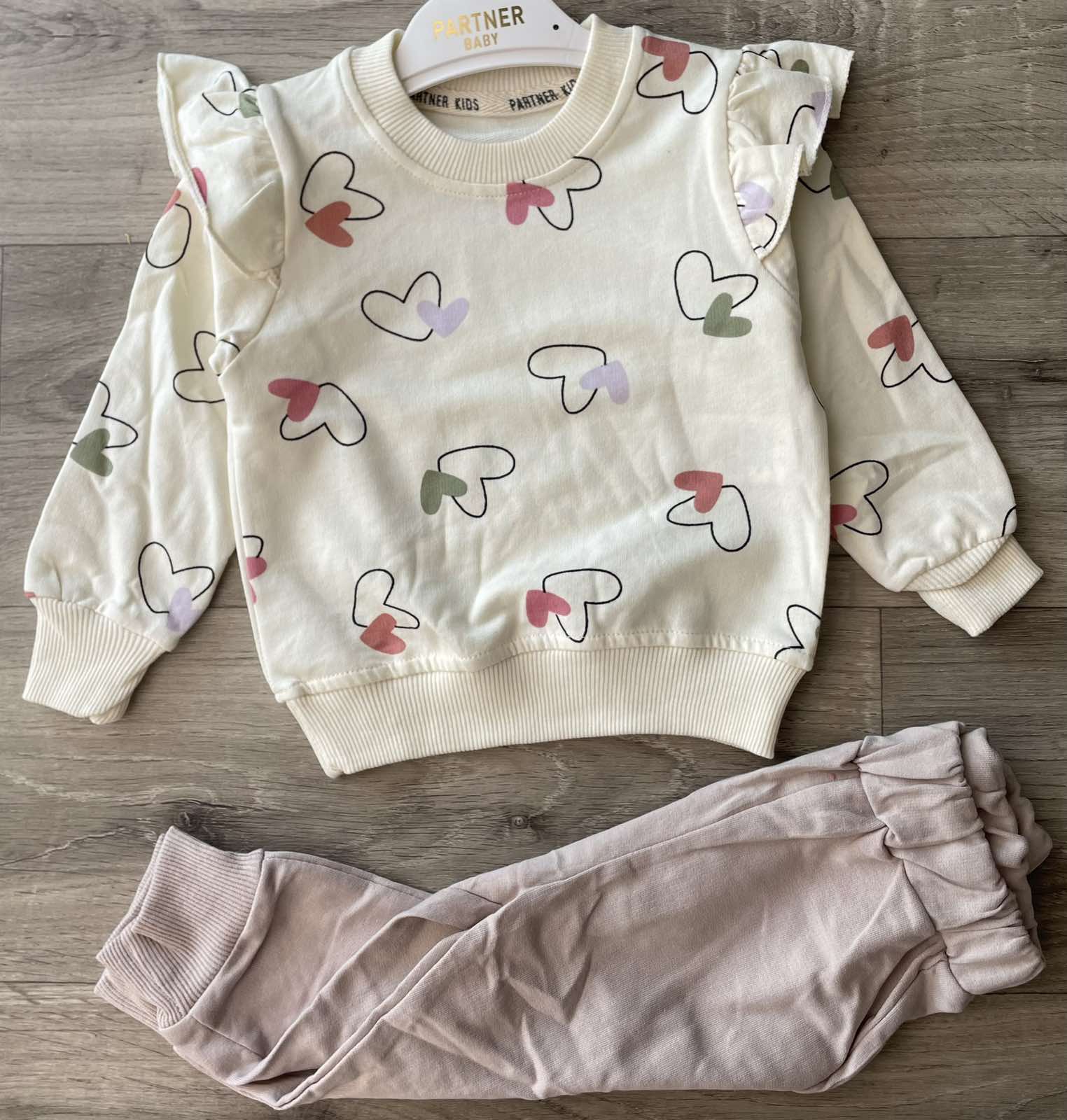 Костюм Partner "Серця" бежевий, дівчинка 9-11-18-24 місяців оптом уп. - 4 шт.