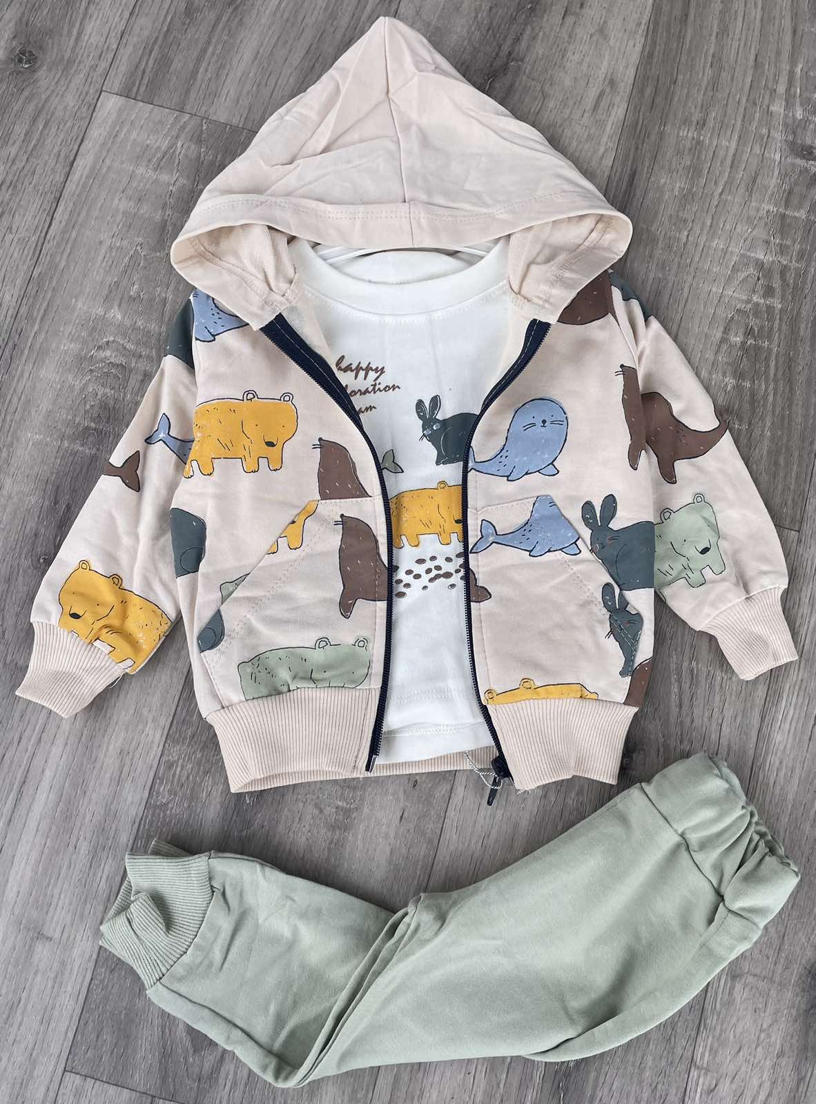 Костюм Partner «Тварини» оливковий, хлопчик 9-12-18-24 місяців оптом уп. - 4 шт.