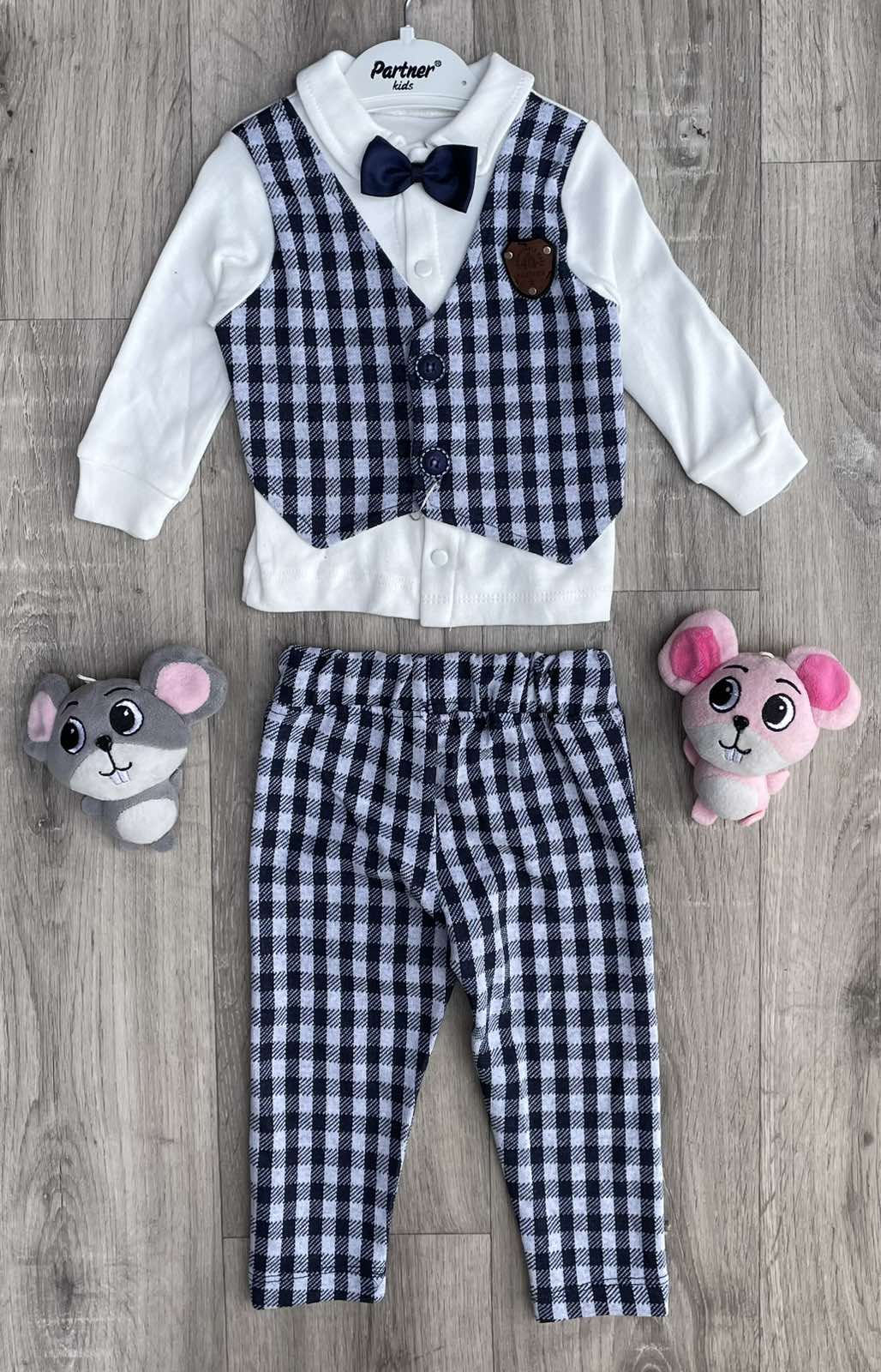 Костюм Partner "В клетку" синий, мальчик 9-12-18-24 месяцев оптом уп. - 4 шт.
