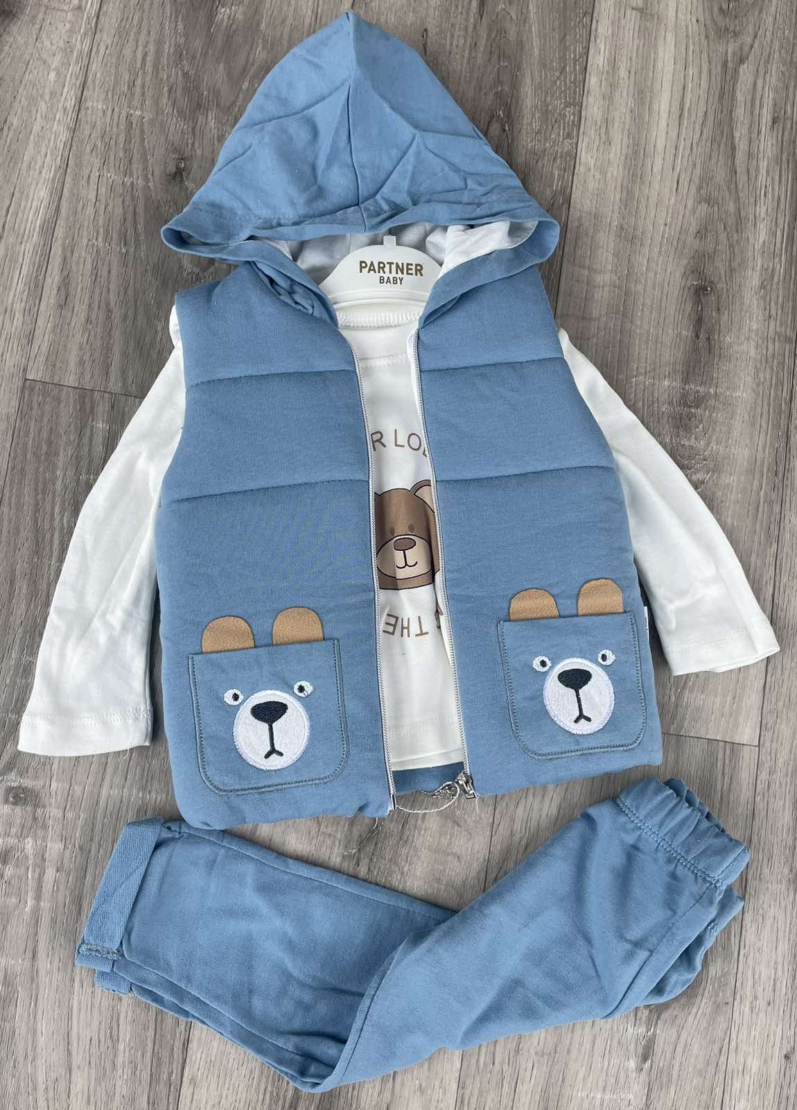 Костюм Partner «Мишка» голубой, мальчик 9-12-18-24 месяцев оптом уп. - 4 шт.