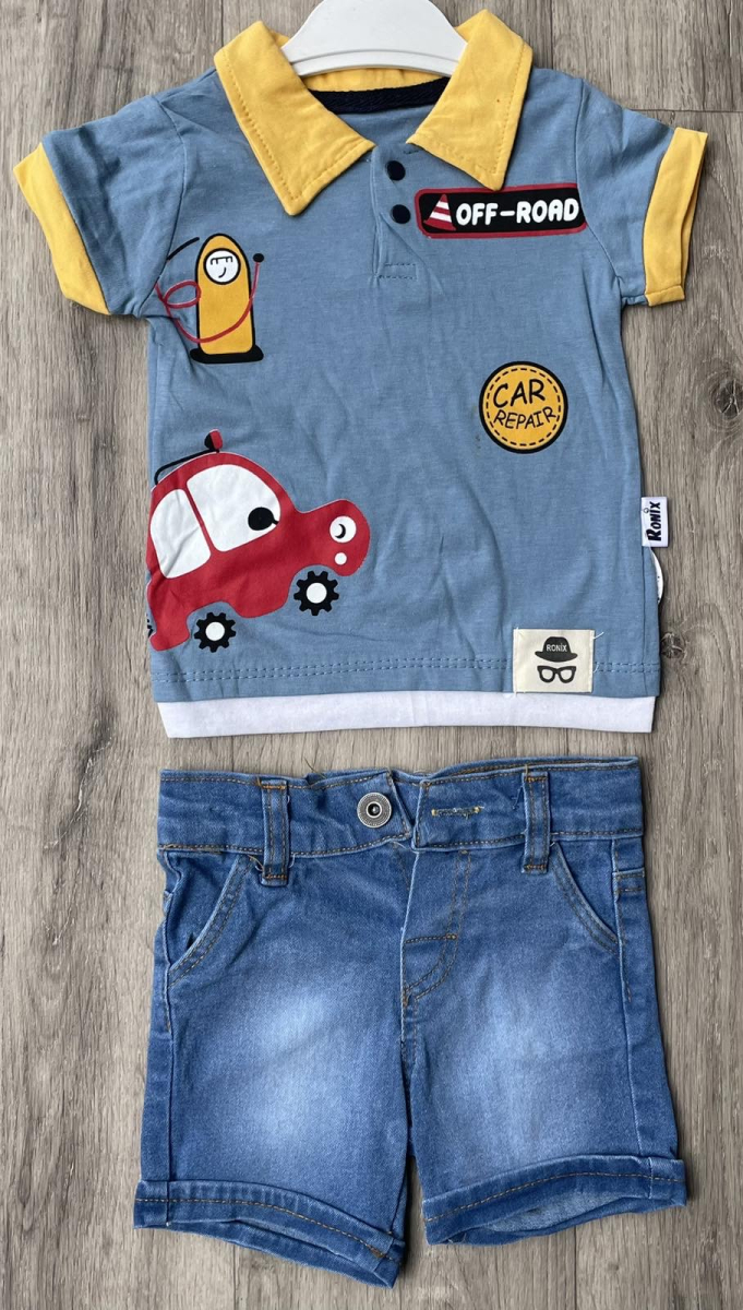 Костюм Ronix «Car» бледно-синий, мальчик 6-9-12-18 месяцев оптом уп. - 4 шт.