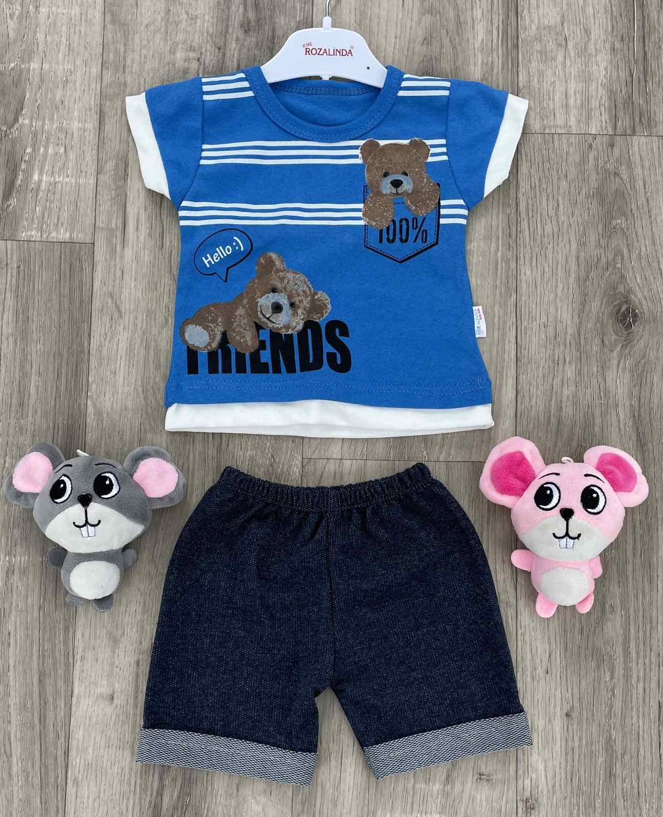 Костюм Rozalinda "Friends" небесний, хлопчик 6-9-12 місяців оптом уп. - 3 шт.