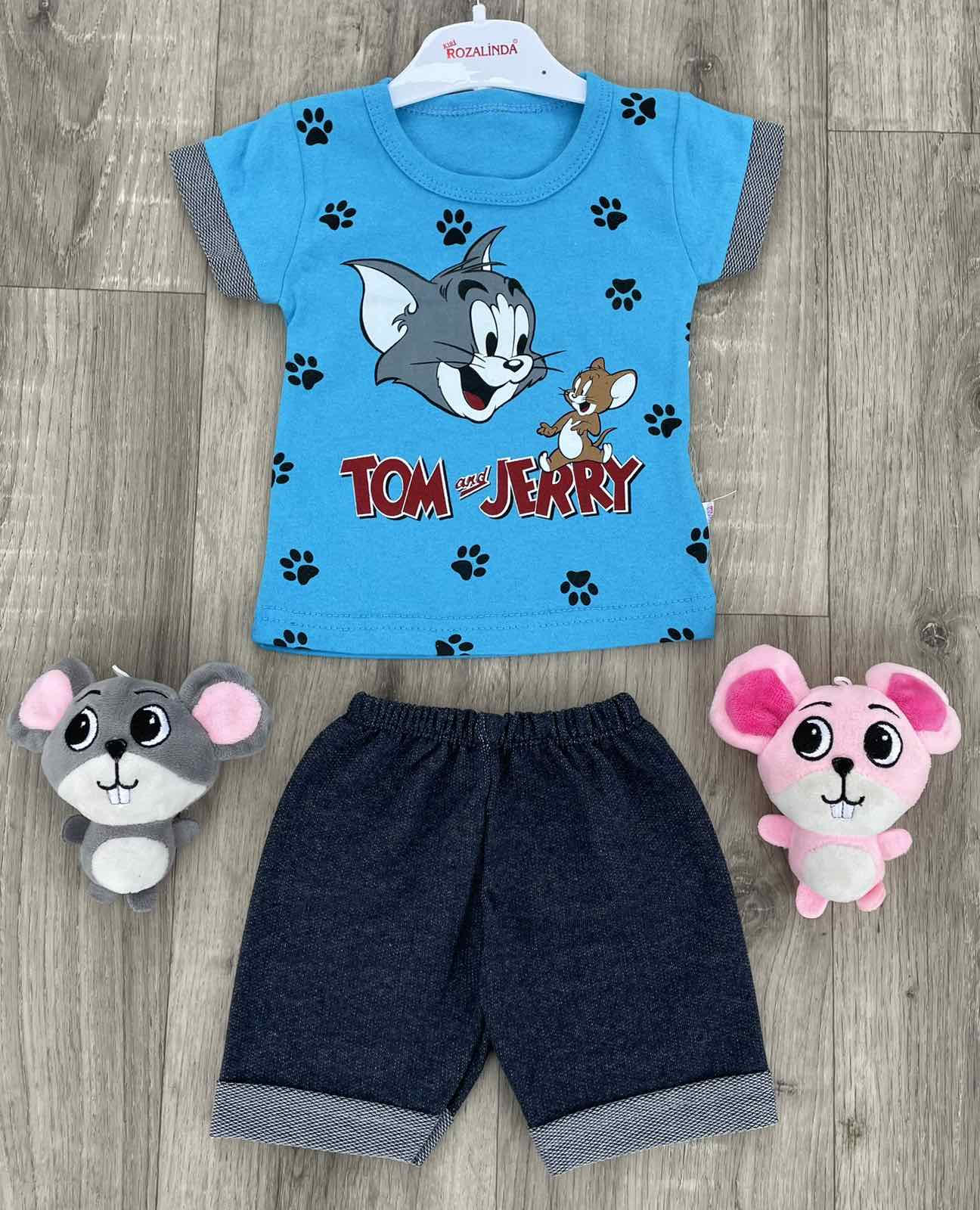 Костюм Rozalinda "Tom & Jerry" блакитний, хлопчик 6-9-12 місяців оптом уп. - 3 шт.