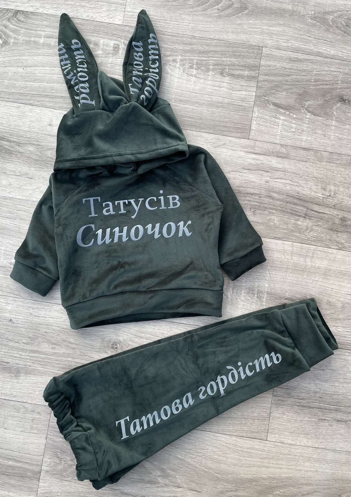 Костюм «Татусів синочок» темно-зелений, хлопчик 9міс-1-2-3 роки оптом уп. - 4 шт.