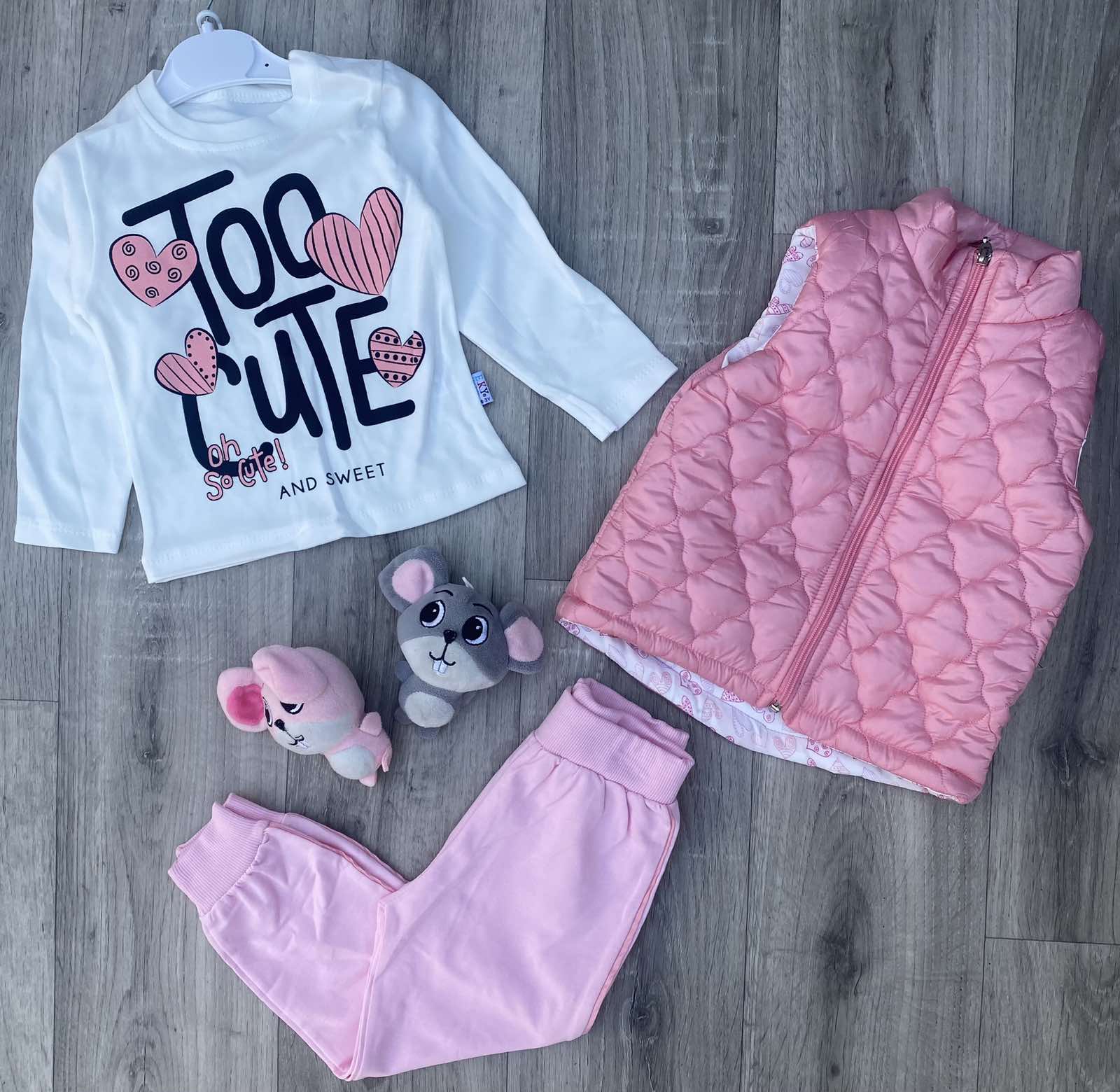 Костюм "Too cute" рожевий, дівчинка 3-4-5 років оптом уп. - 3 шт.