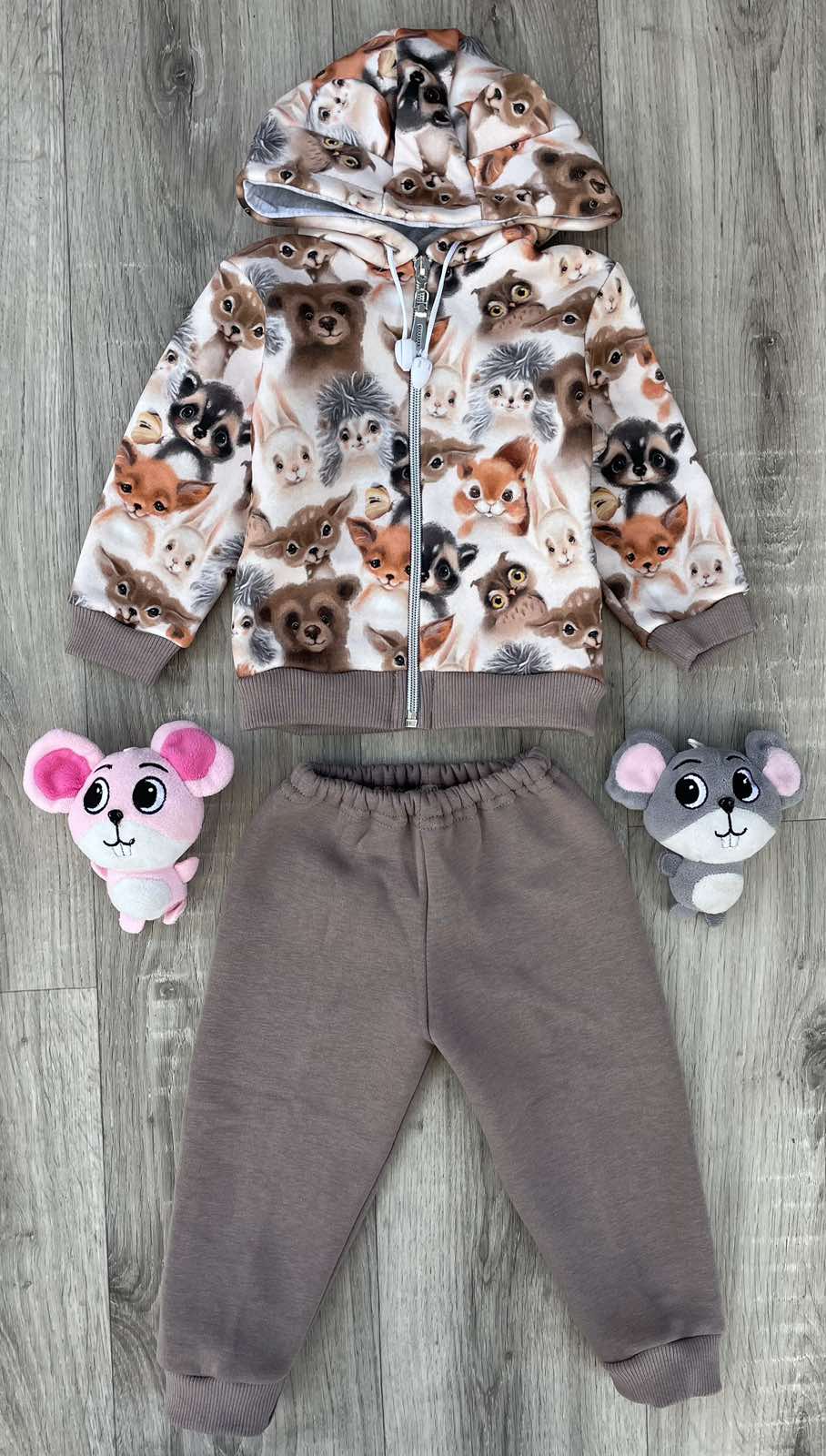 Костюм "Тваринки" бежевий, унісекс 6-9-12 місяців оптом уп. - 3 шт.