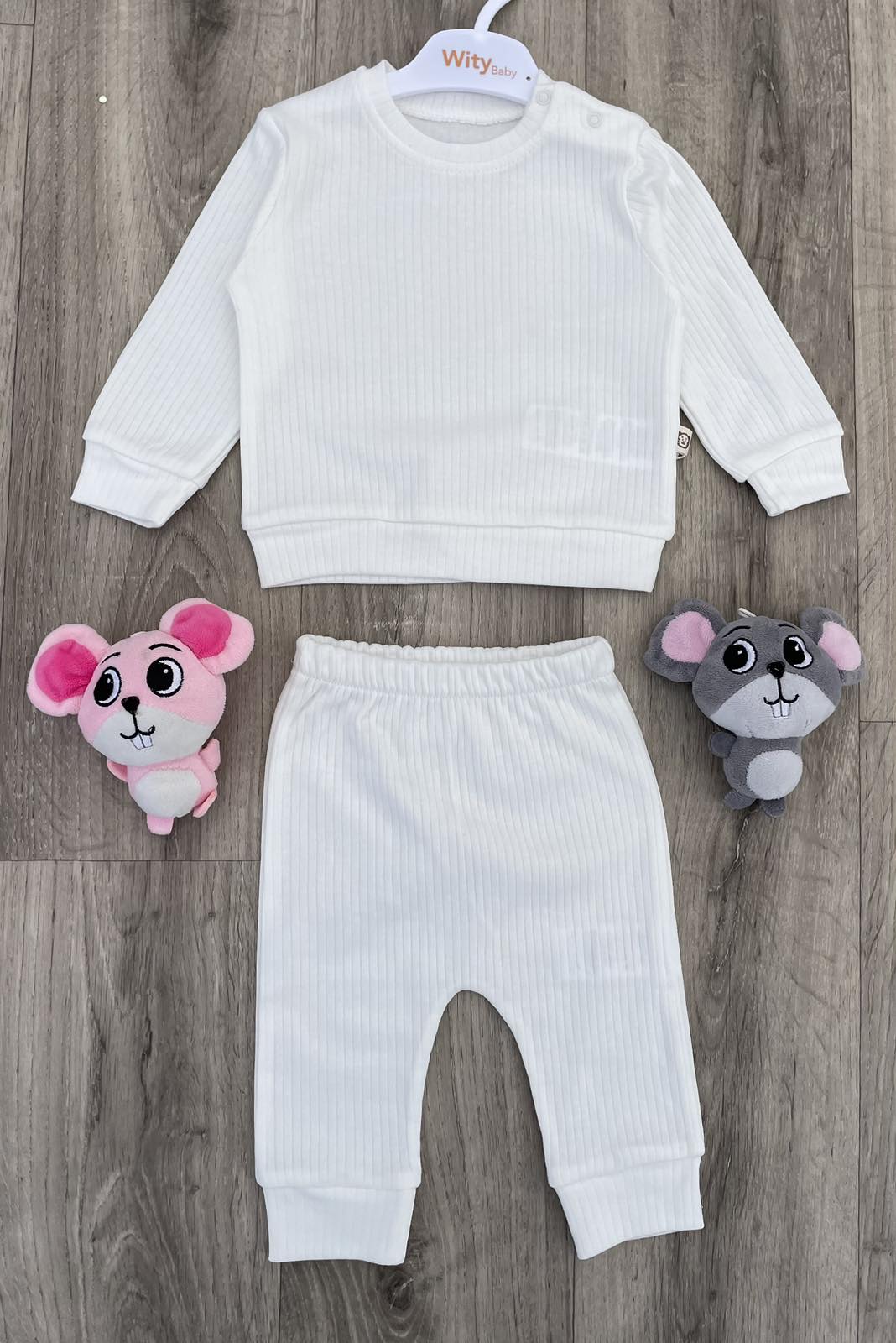Костюм Wity "Рубчик" белый, унисекс 3-6-9-12 месяцев оптом уп. - 4 шт.