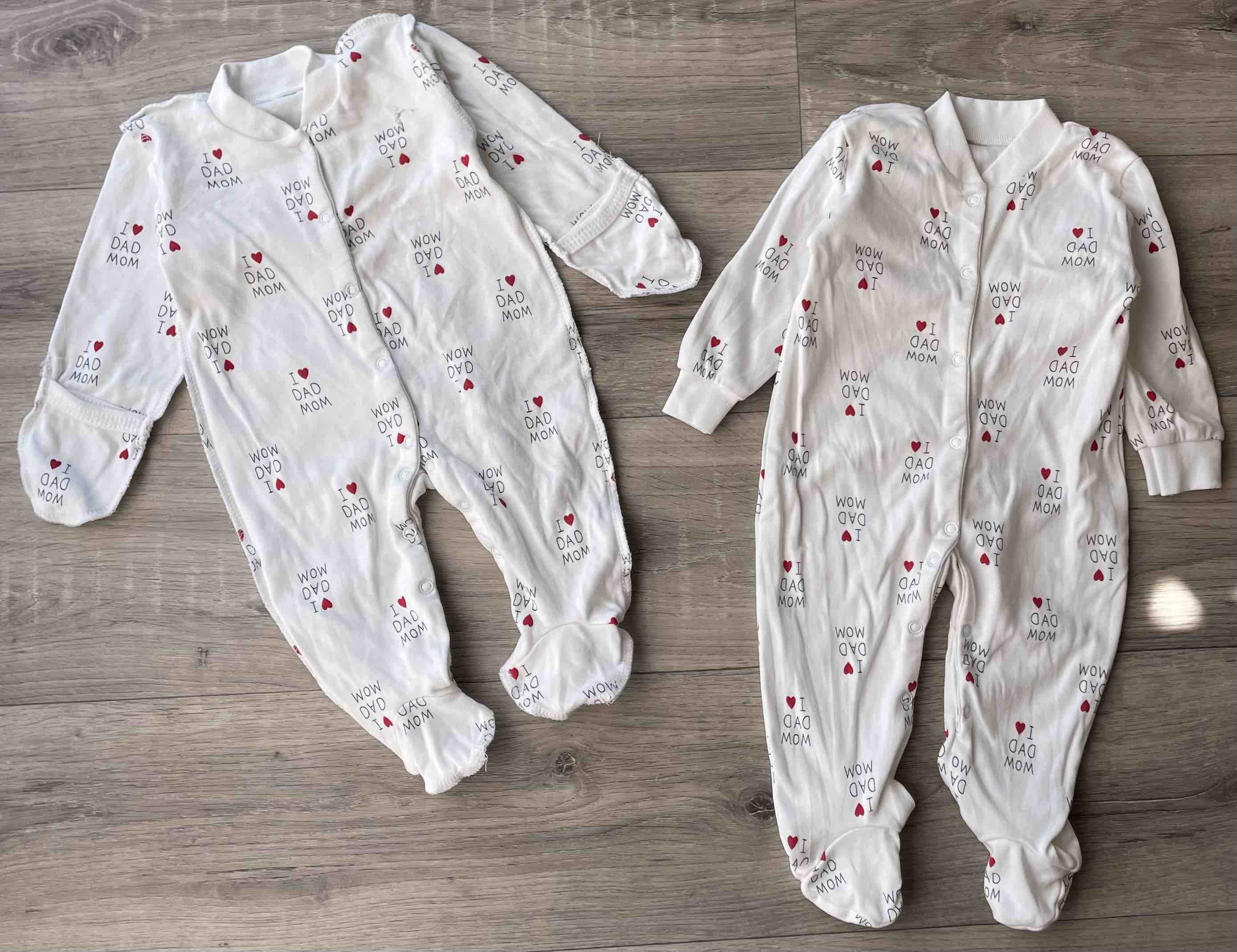 Лот із чоловічків "❤️" молочний, унісекс 3-6 місяців оптом уп. - 2 шт.