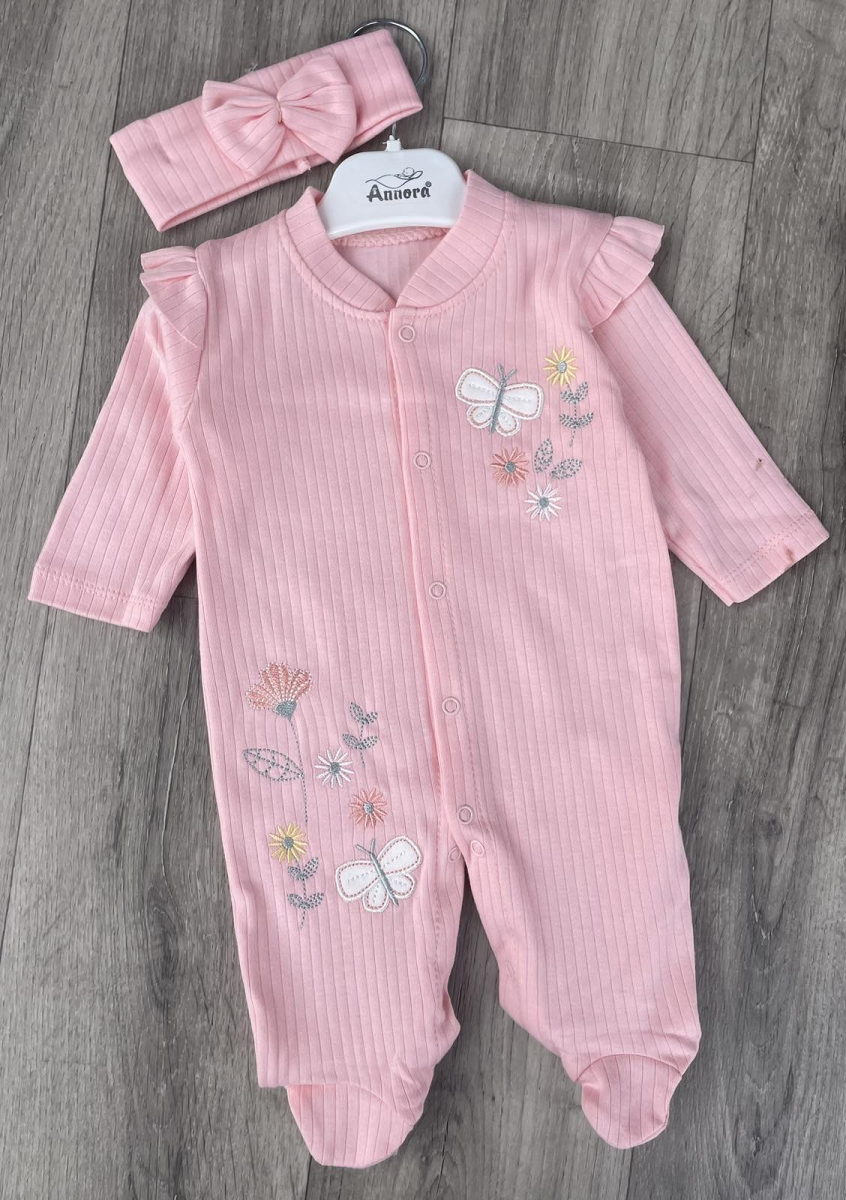Людин Annora «Метелики» персиковий, дівчинка 0-3-6 місяців оптом уп. - 3 шт.