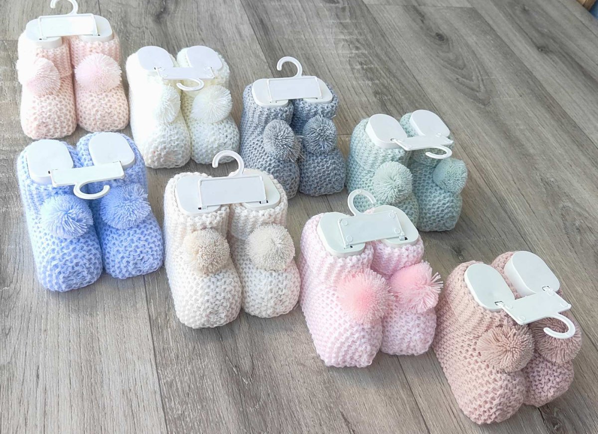 Пінетки "Помпончик" різні кольори, хлопчик+дівчинка 0-6 місяців оптом уп. - 12 шт.