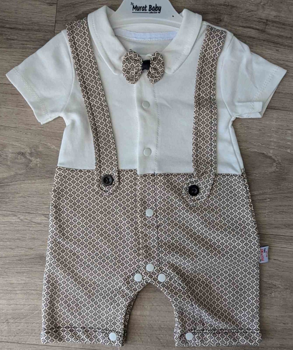 Песочник ""Бабочка ромбик" бежевый, мальчик 3-6-9-12 месяцев оптом уп. - 4 шт.
