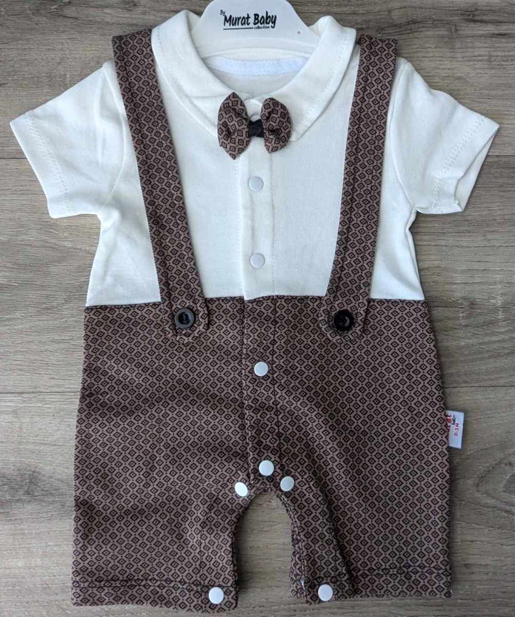 Песочник ""Бабочка ромбик" коричневый, мальчик 3-6-9-12 месяцев оптом уп. - 4 шт.