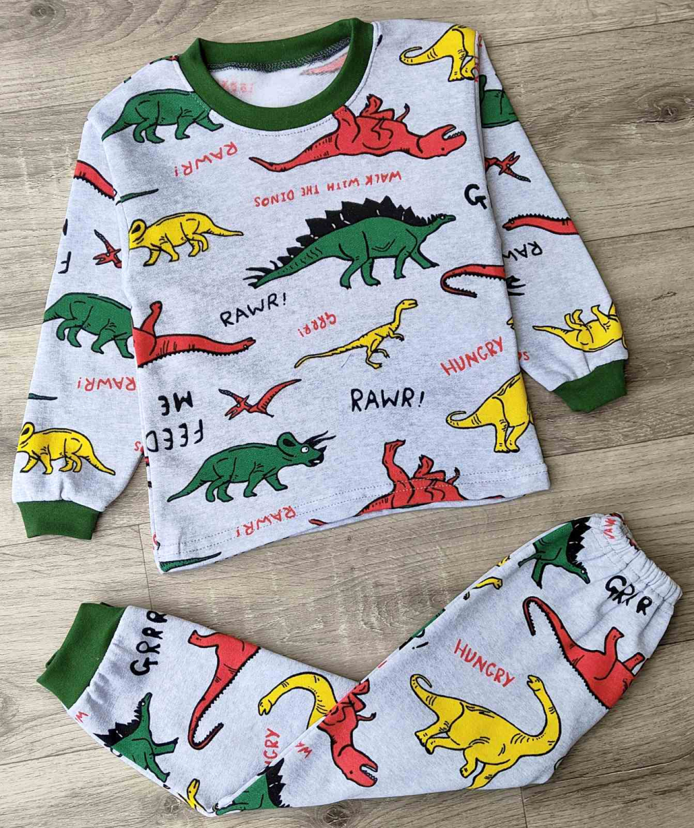 Пижама "Динозавры" серая, мальчик 2-3-4-5-6 лет оптом уп. - 5 шт.