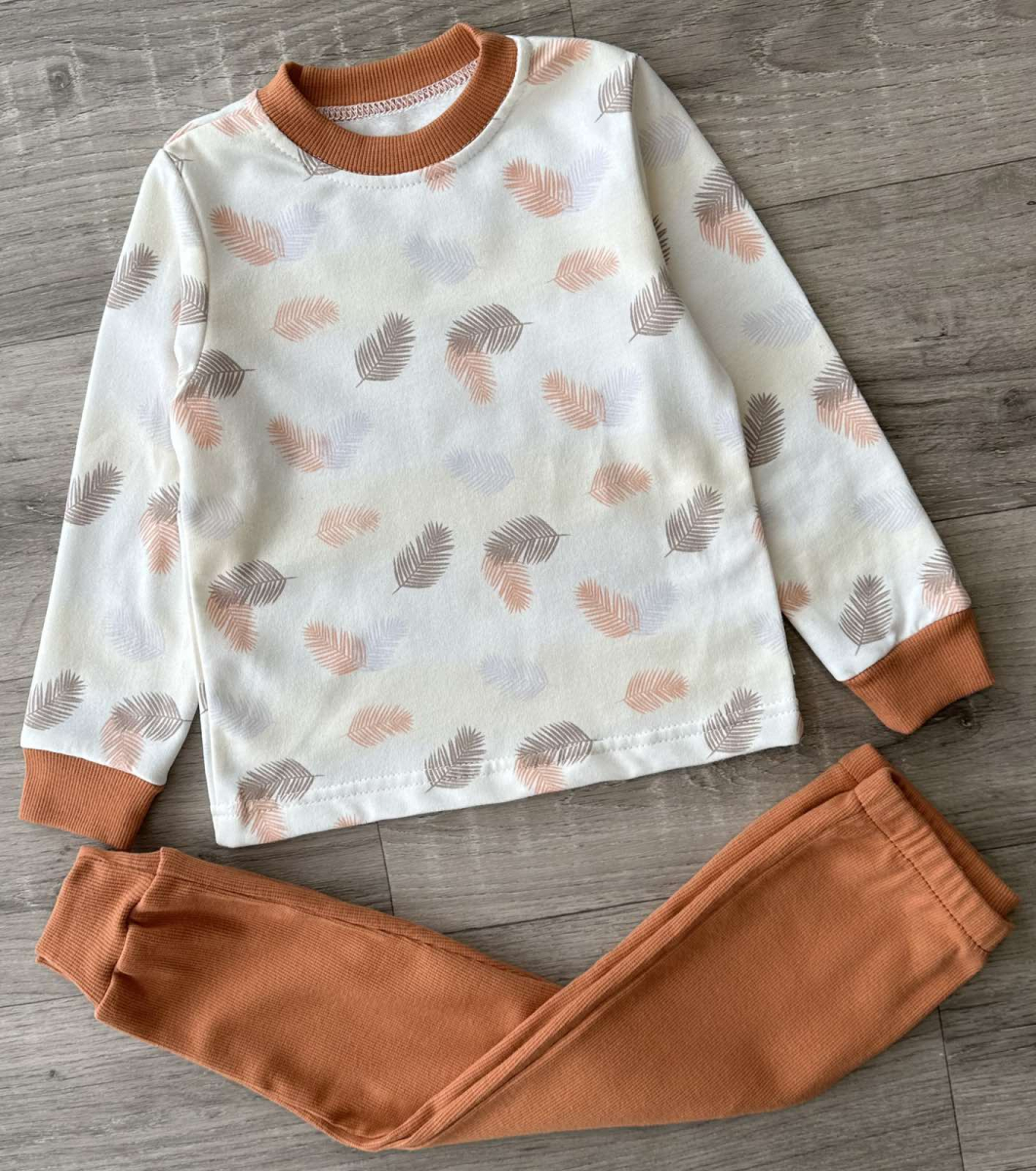 Піжама "Перишки" коричневий, дівчинка 5-6-7-8 років оптом уп. - 4 шт.