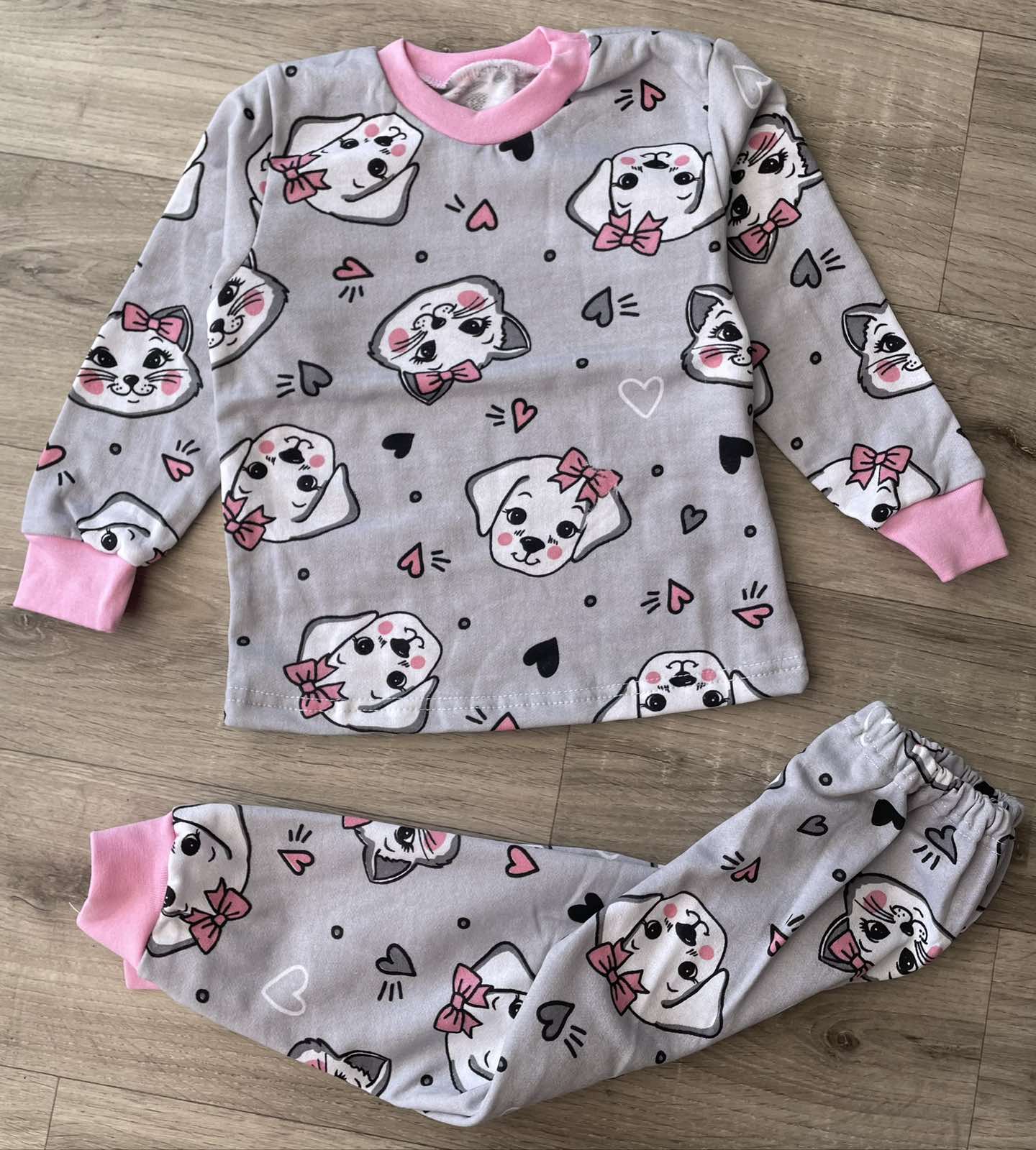 Піжама "Кошеня і цуценя" сіра, дівчинка 1-3-5-7-9 років оптом уп. - 5 шт.