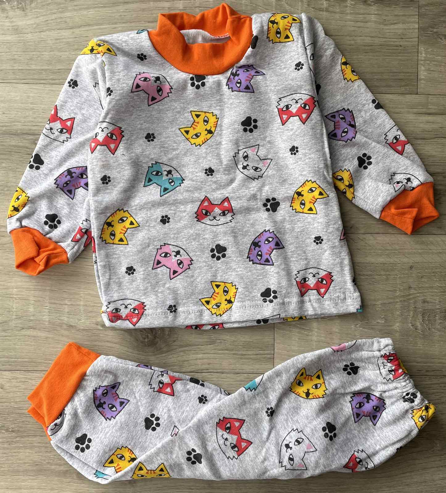 Піжама "Кошенята" сіра, дівчинка 1-3-5-7-9 років оптом уп. - 5 шт.