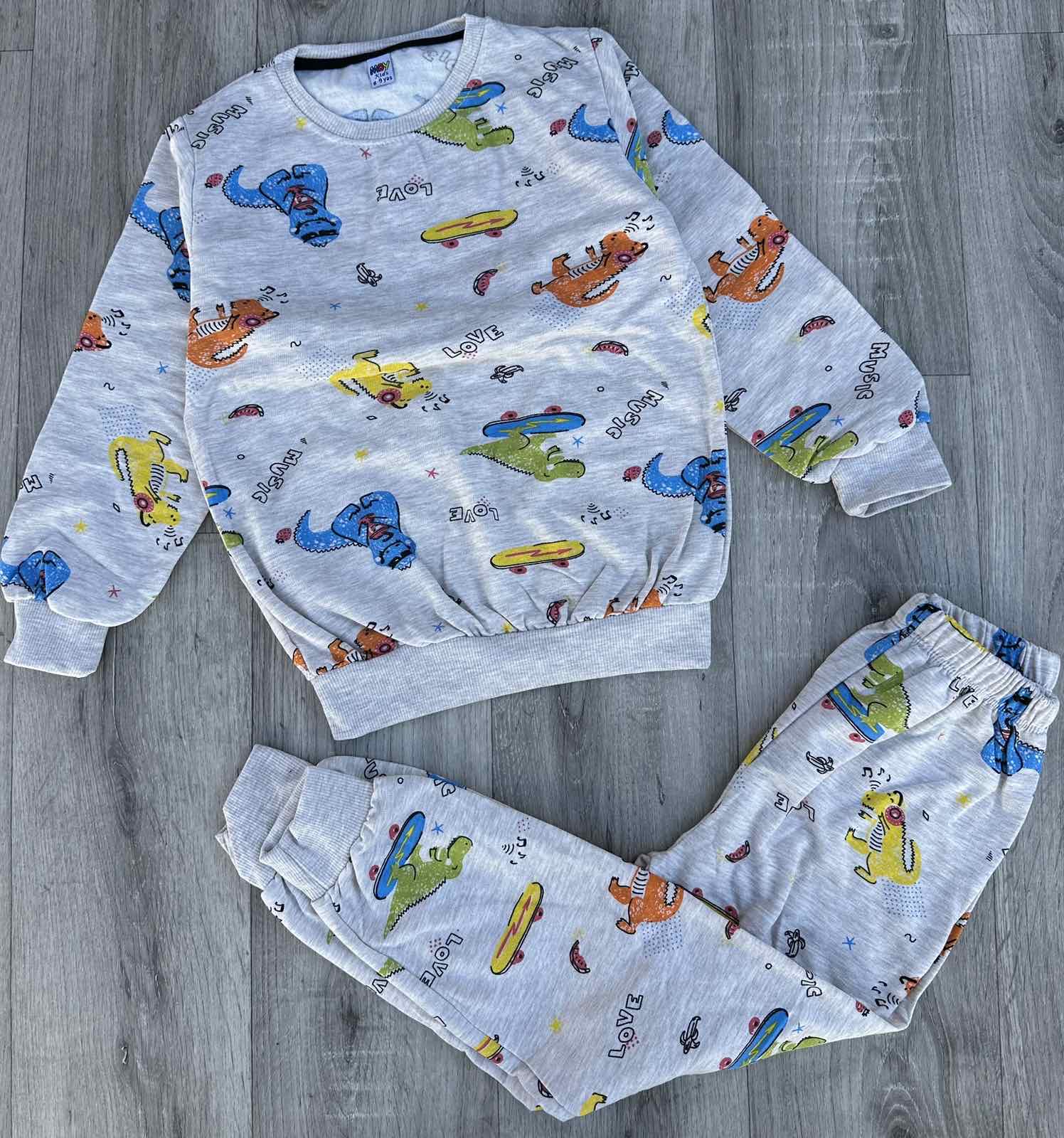 Пижама Moy «Динозаврики» серый, мальчик 8-9-10-11-12 лет оптом уп. - 5 шт.