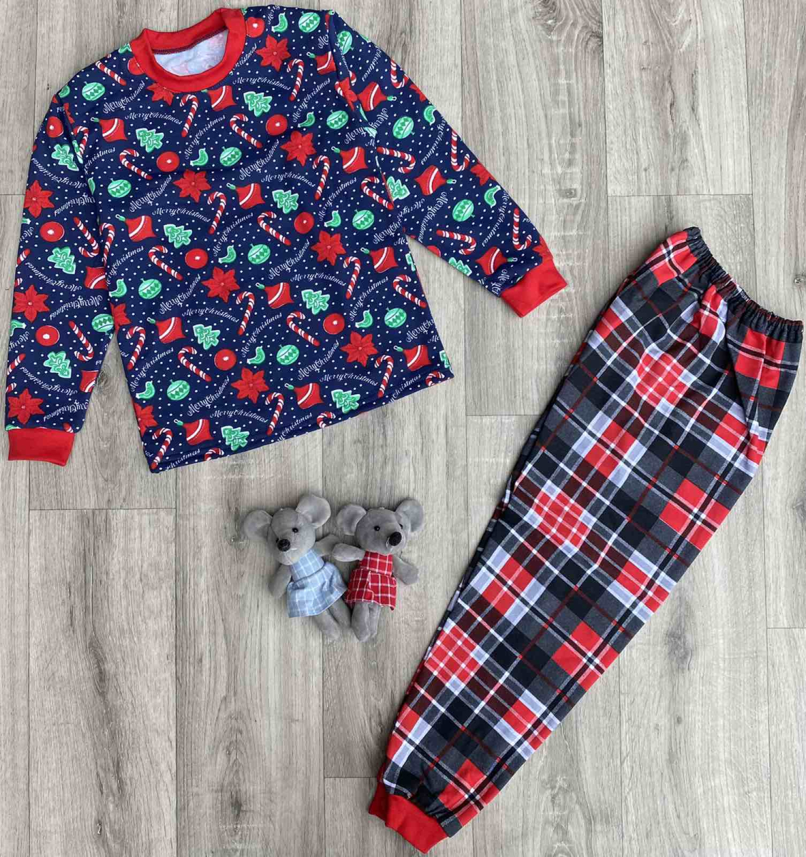 Піжама " Новорічна" червона, унісекс 6-7-8 років оптом уп. - 3 шт.