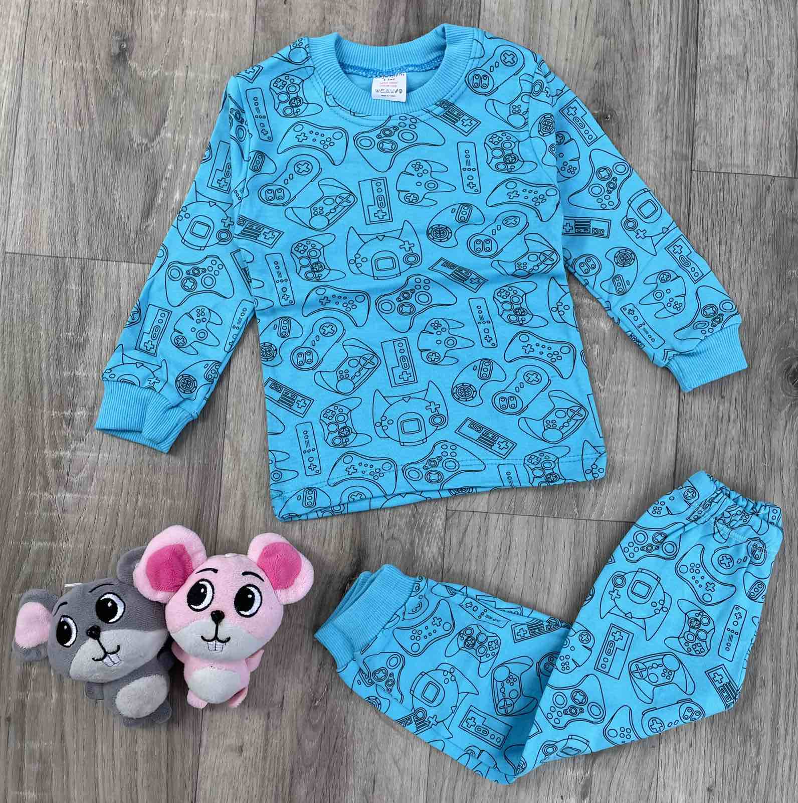 Піжама Supermini "Джойстик" бірюзова , унісекс 1-2-3 років оптом уп. - 3 шт.