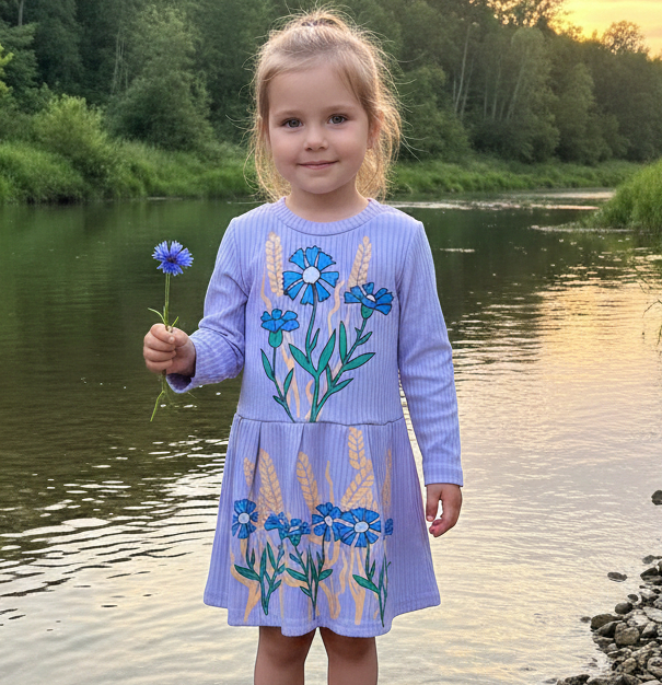 Платье «Васильки» фиолетовый(сиреневый), 1,5-3-5-7-9 года оптом уп. - 5 шт.
