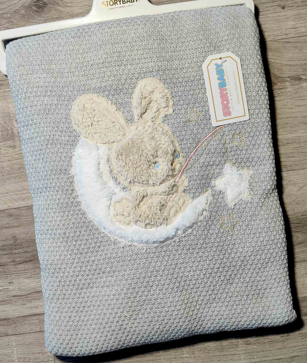 Плед Story Baby «Зайчик» серый, унисекс 80*90 оптом уп. - 1 шт.
