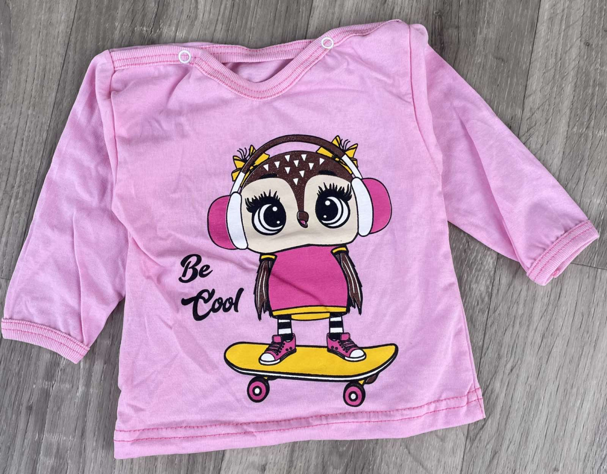 Реглан «Совушка» розовый, девочка 6-9-12-18 месяцев оптом уп. - 4 шт.