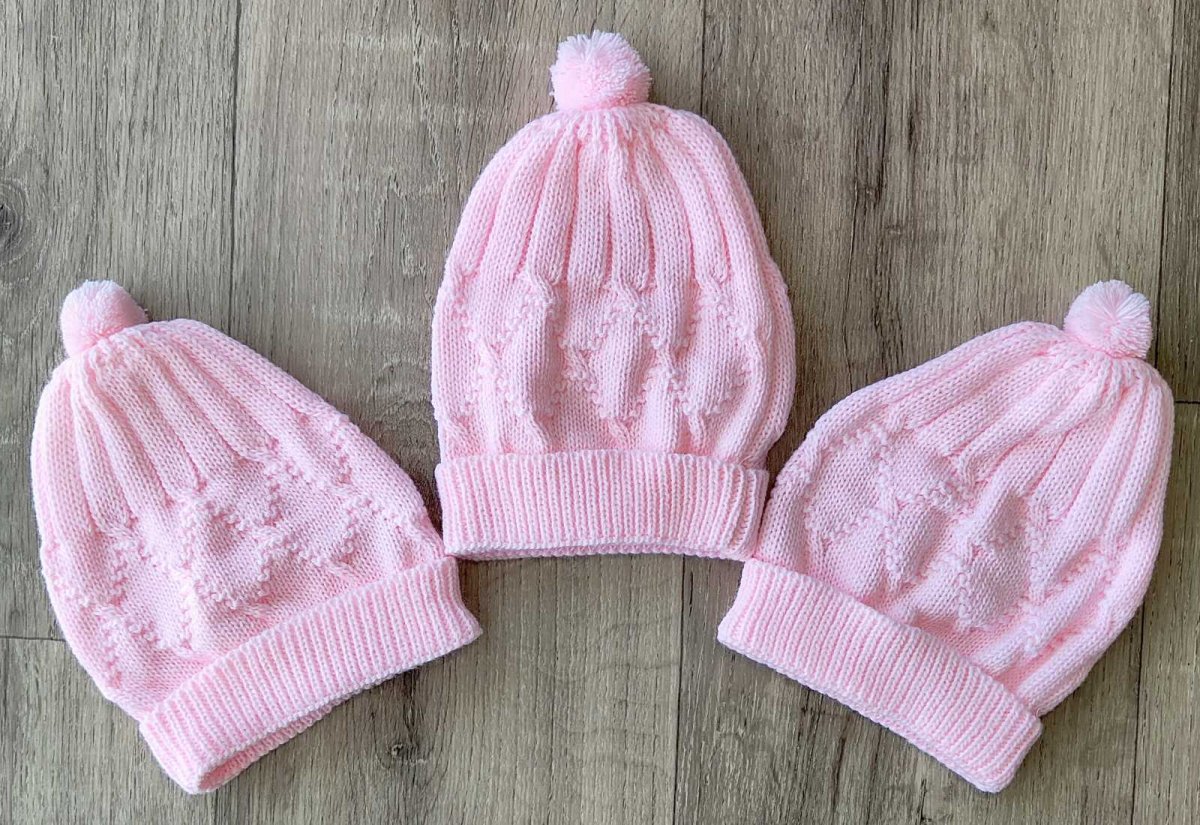 Шапочки Bebe Trico "В'язка" рожевий, дівчинка 0-3 місяців оптом уп. - 6 шт.