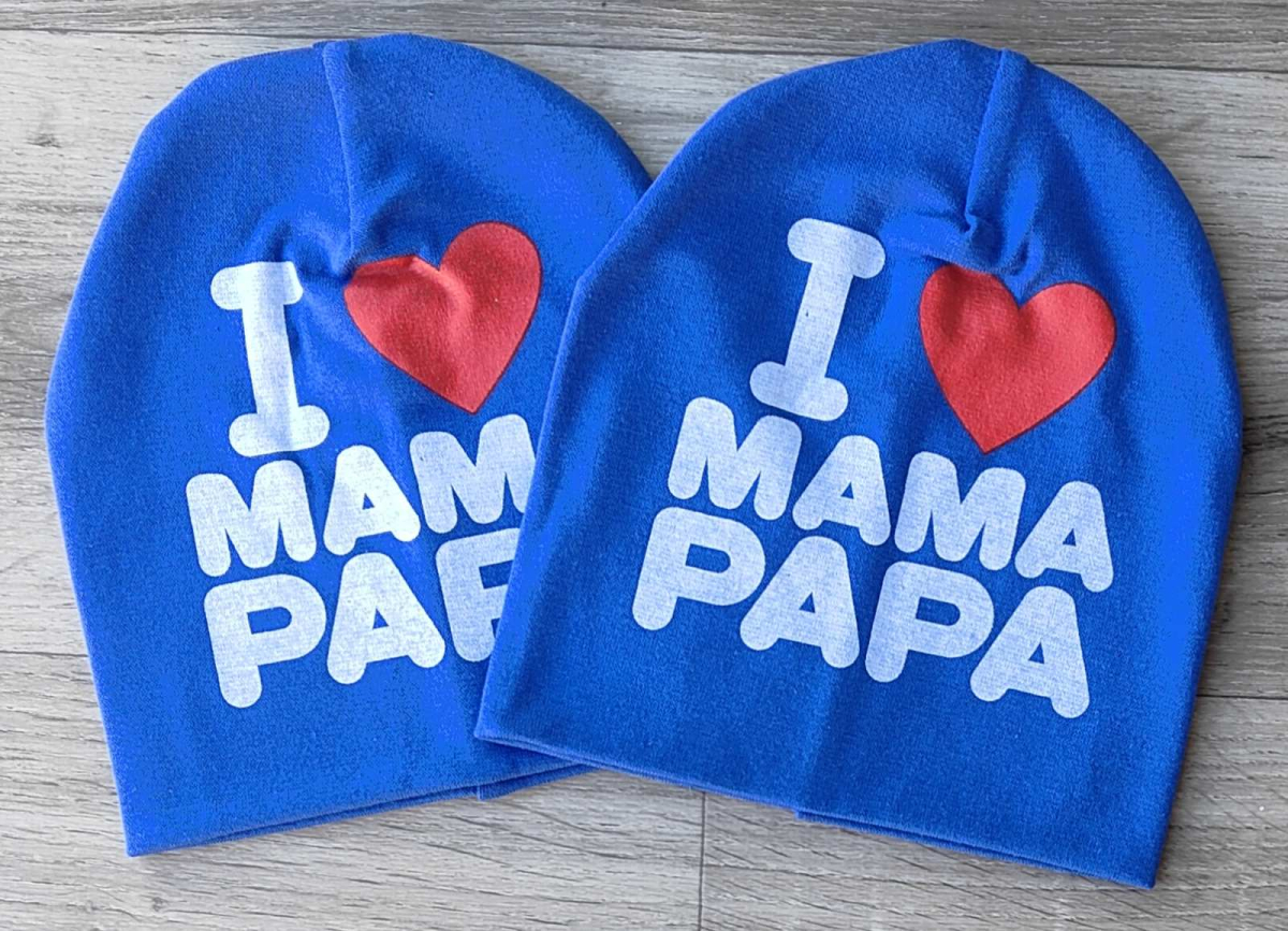 Шапочки "Я❤️Мама,Папа" синій, хлопчик 1-2 роки оптом уп. - 5 шт.