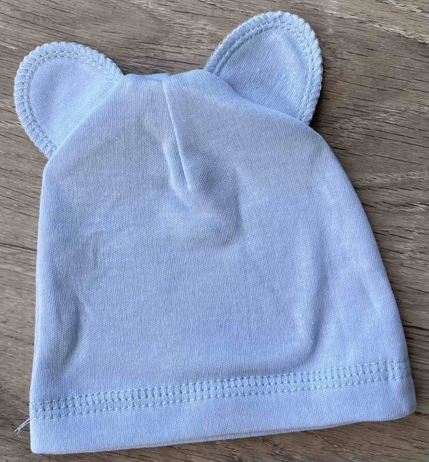 Шапочки "Вушка" блакитний,хлопчик 0-3 місяців оптом уп. - 20 шт.