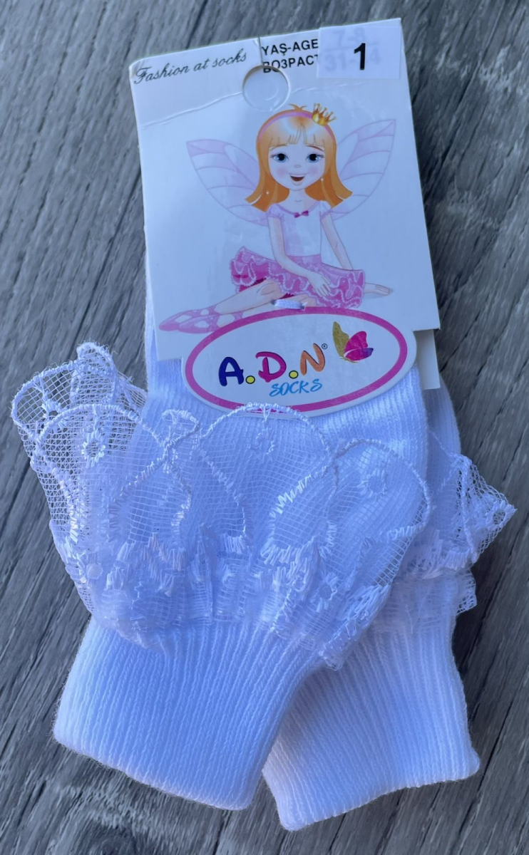 Шкарпетки ADN «Рюші» білий, дівчинка 0-12 місяців оптом уп. - 12 шт.
