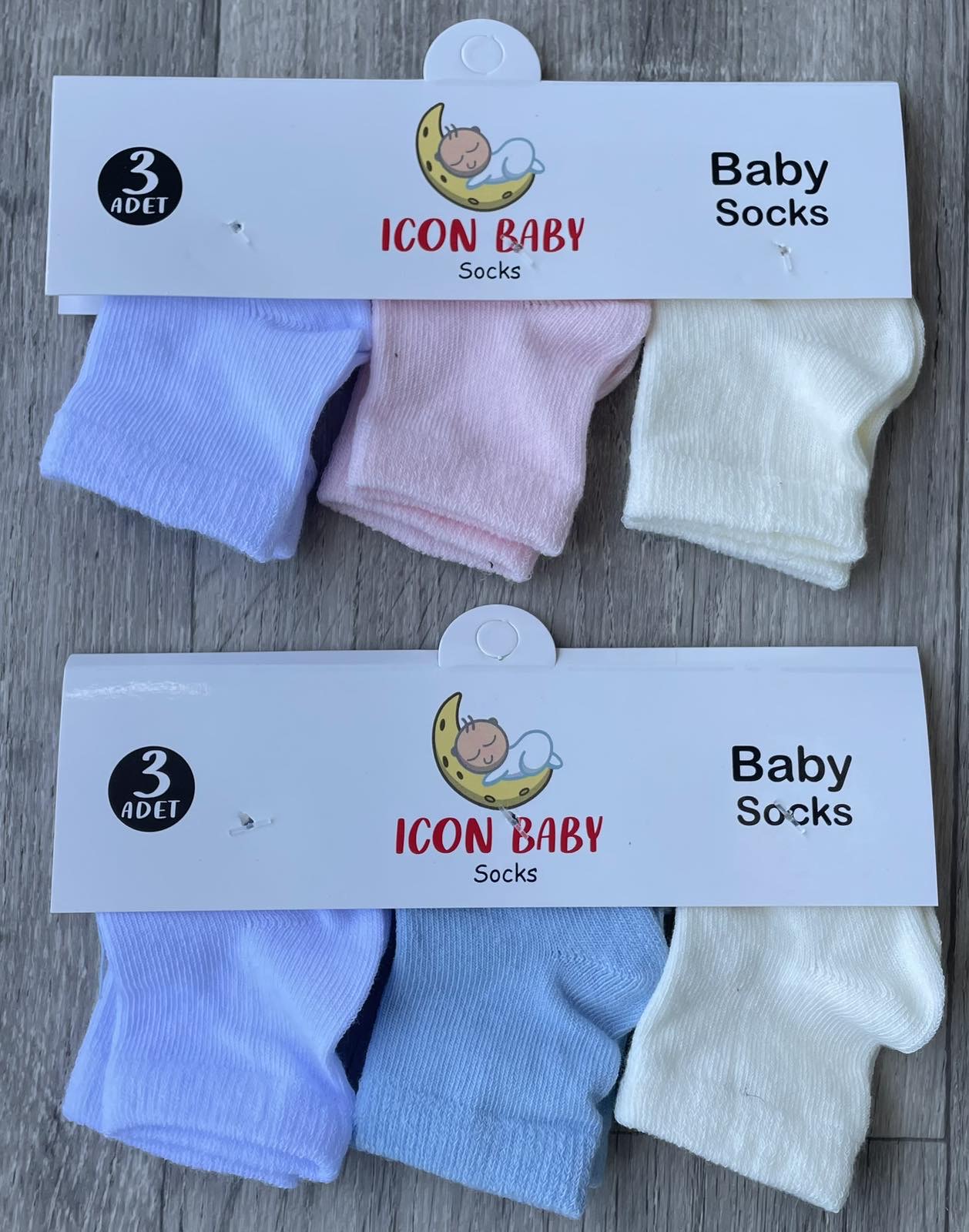Шкарпетки Icon Baby «Однотонні» мікс кольорів, хлопчик+дівчинка 0-12 місяців оптом уп. - 36 шт.