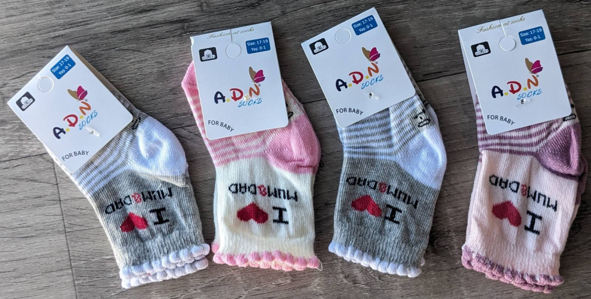 Шкарпетки ADN «I ❤️ Mom, Dad» мікс кольорів, дівчинка 3-4 роки оптом уп. - 12 шт.