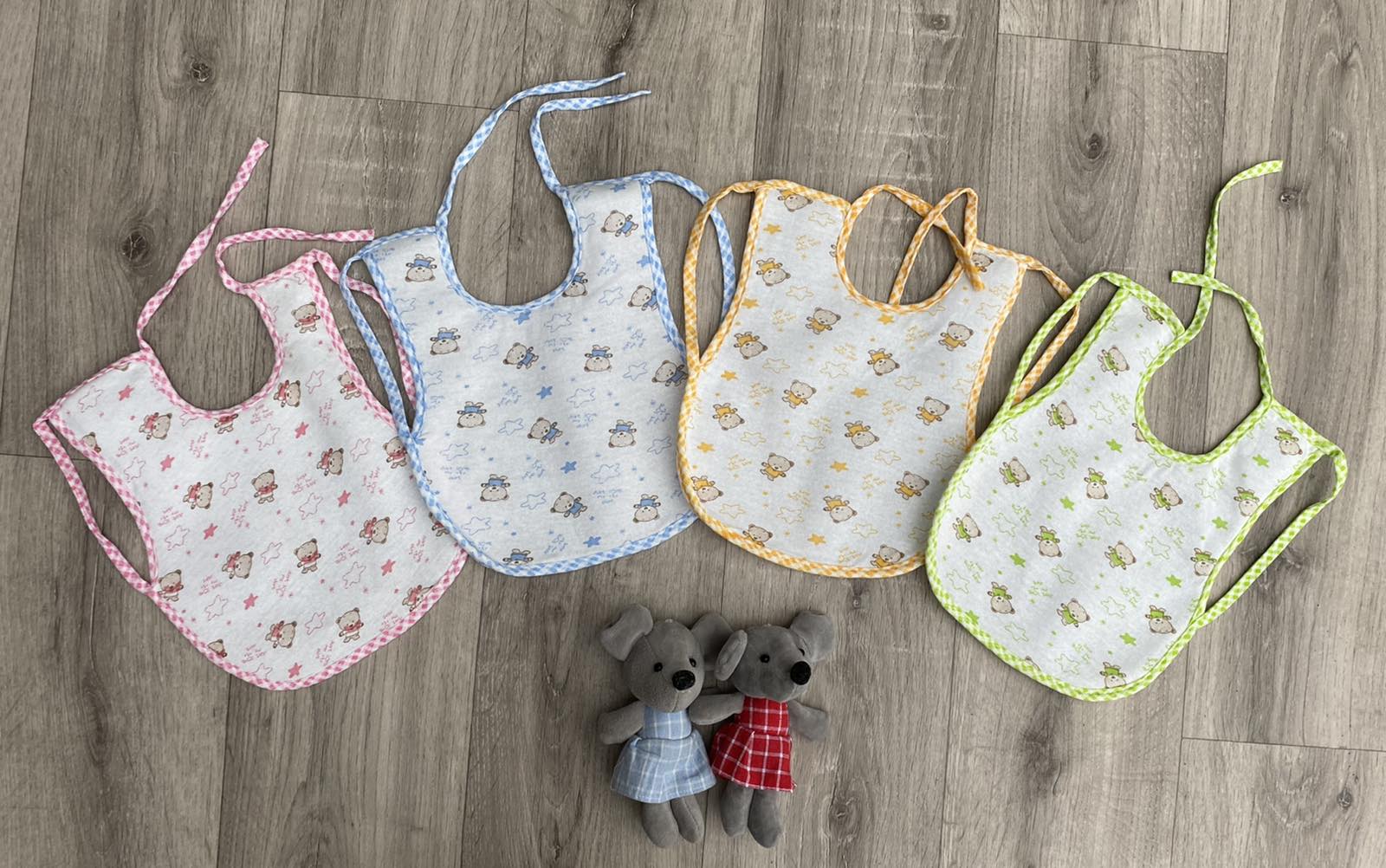 Слинявчик "Ведмедики" рожеві, блакитні, зелені і жовті 22*25 оптом уп. - 12 шт.