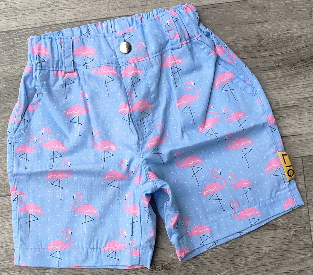 Шорты «Фламинго» голубой, девочка 6-9-12-18-24-36 месяцев оптом уп. - 6 шт.