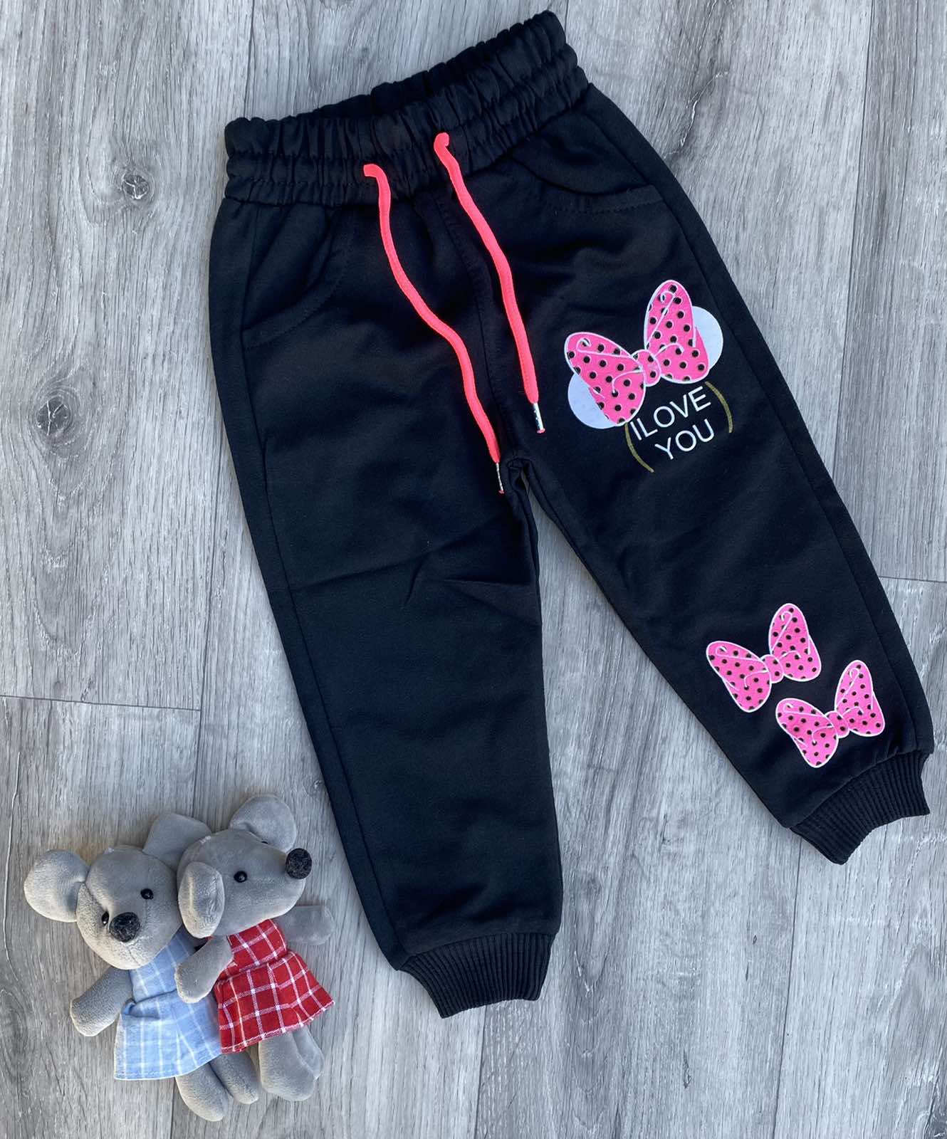 Спортивні штани Paris "Love you" чорні, дівчинка 1-2-3-4 роки оптом уп. - 4 шт.