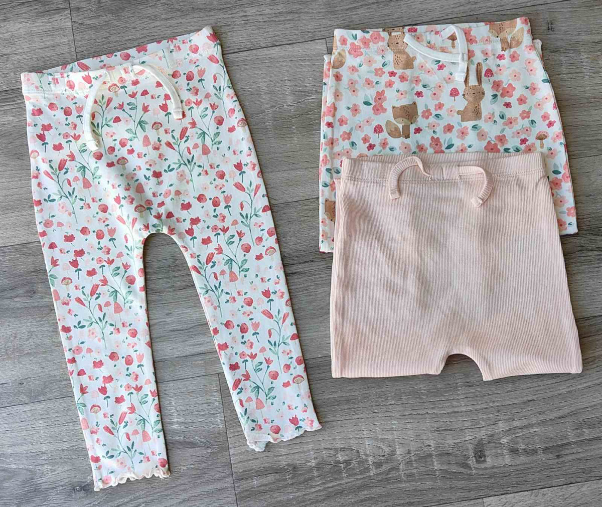 Штани "Квіточки" мікс кольорів, дічинка 12 місяці оптом уп. - 3 шт.